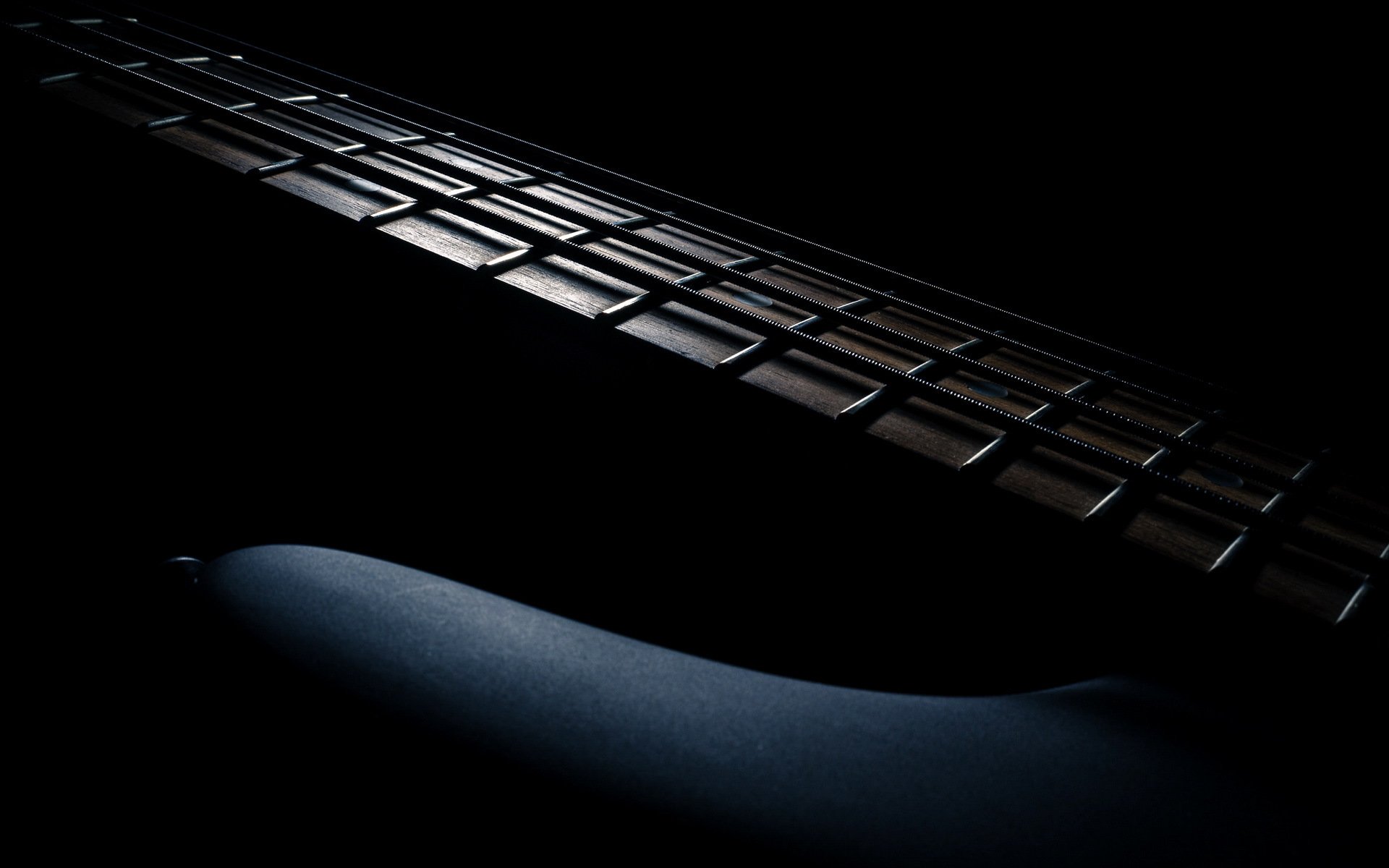 Gitarrengriffbrett auf schwarzem Hintergrund