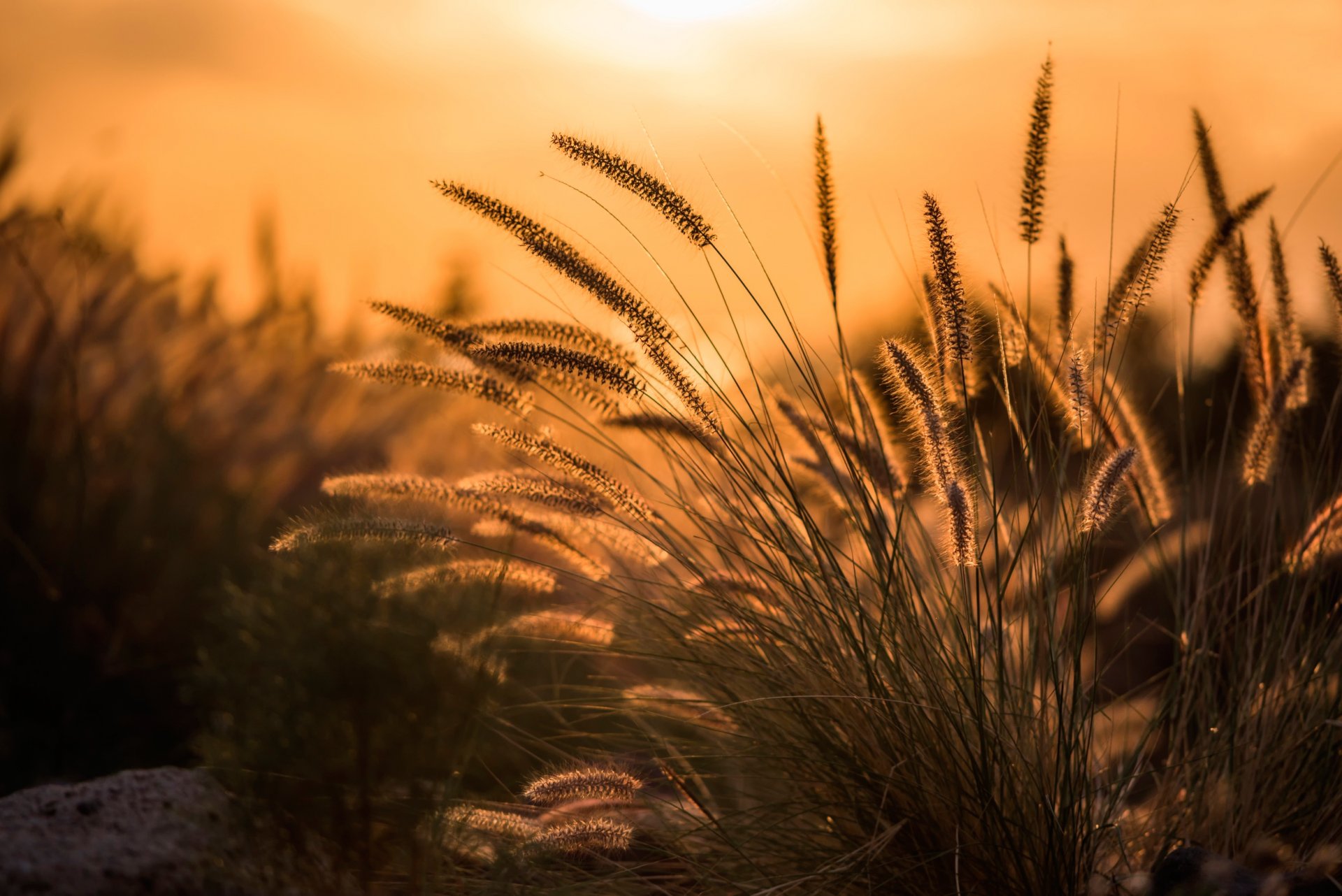 Ährchen von Pflanzen werden im Morgengrauen fotografiert