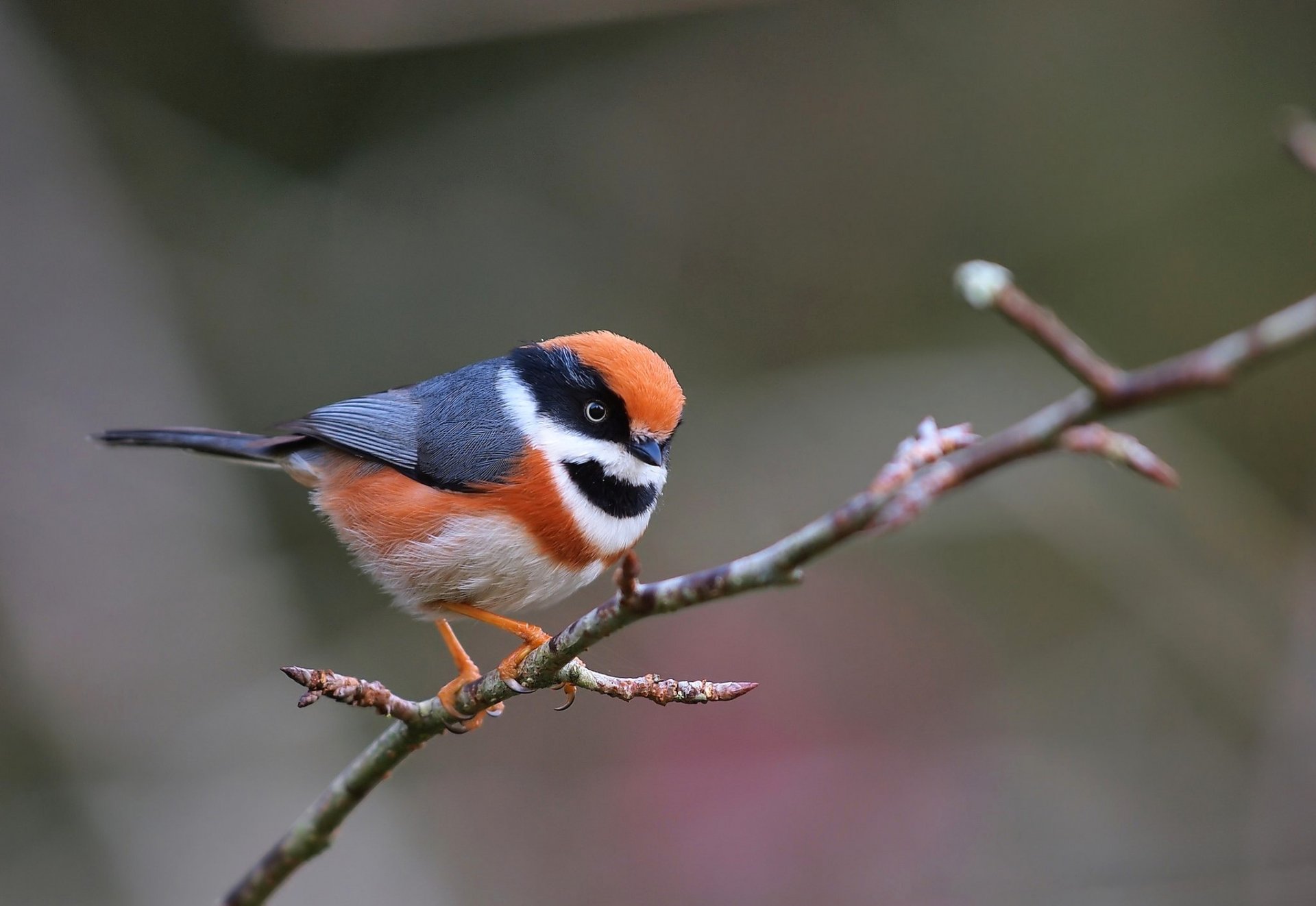 Ein rotgrauer Vogel sitzt auf einem Herbstzweig