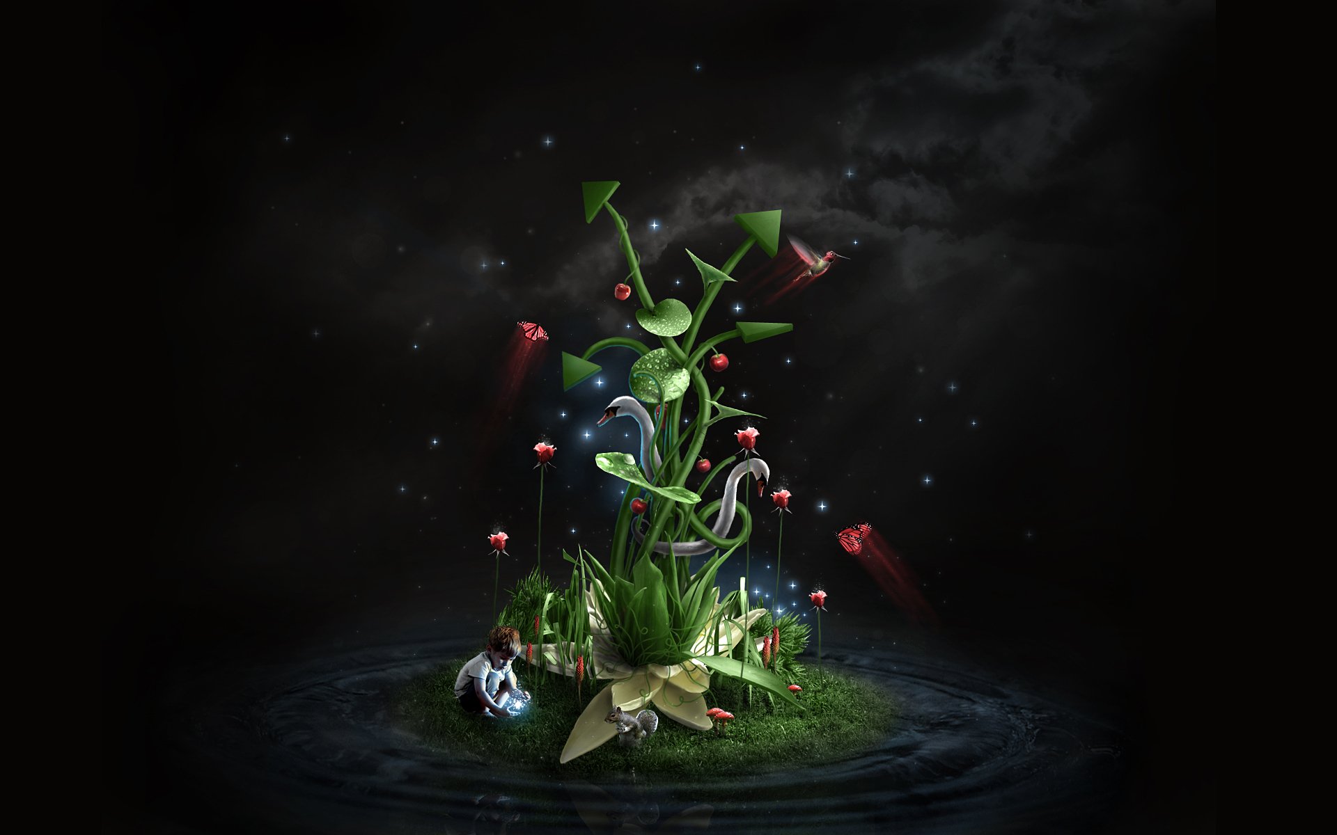 Fabelhafte rote Glühwürmchen und Schmetterlinge spielen mit Baby