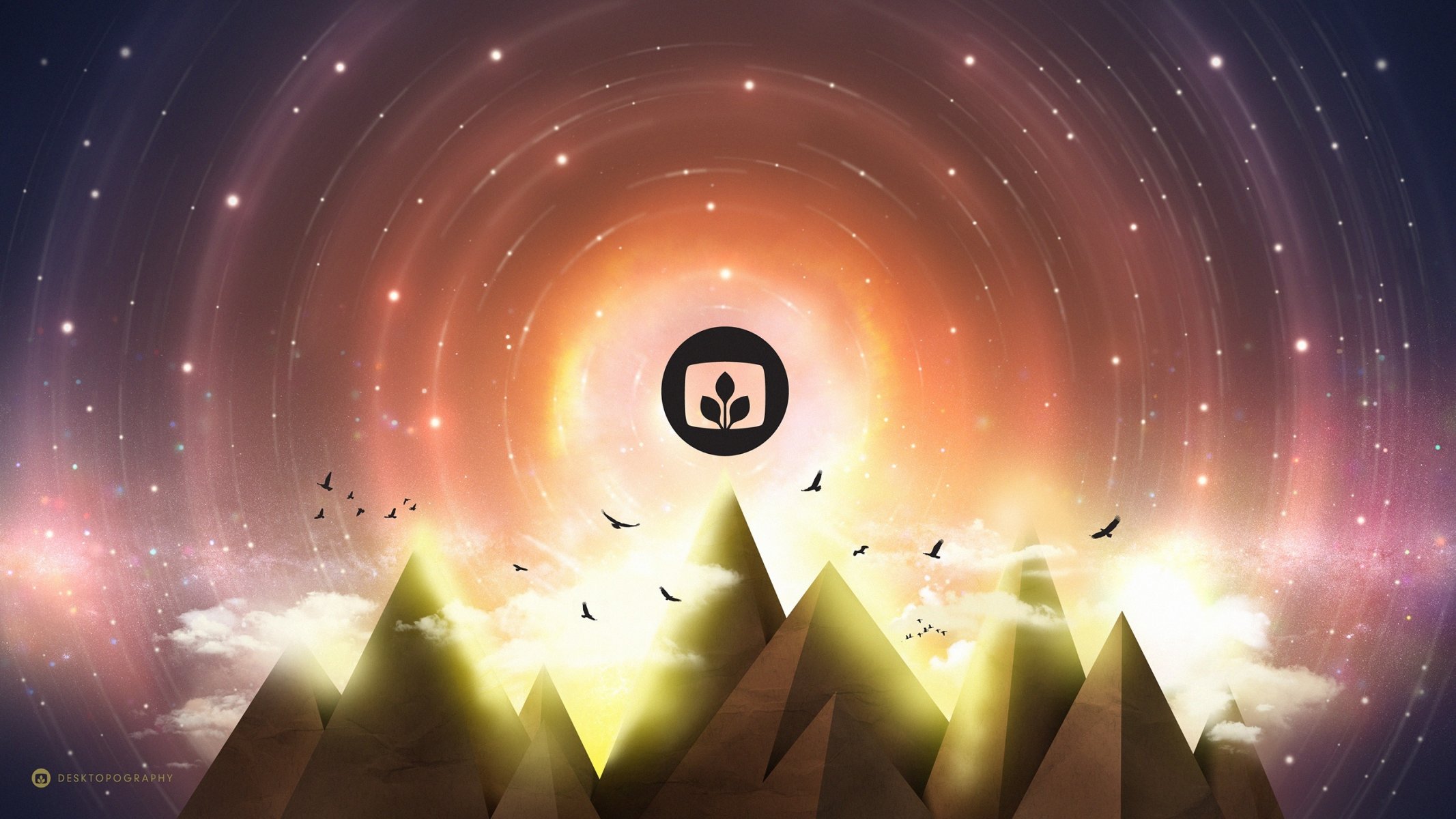 Emblem mit Vögeln und Gipfeln. Desktopography
