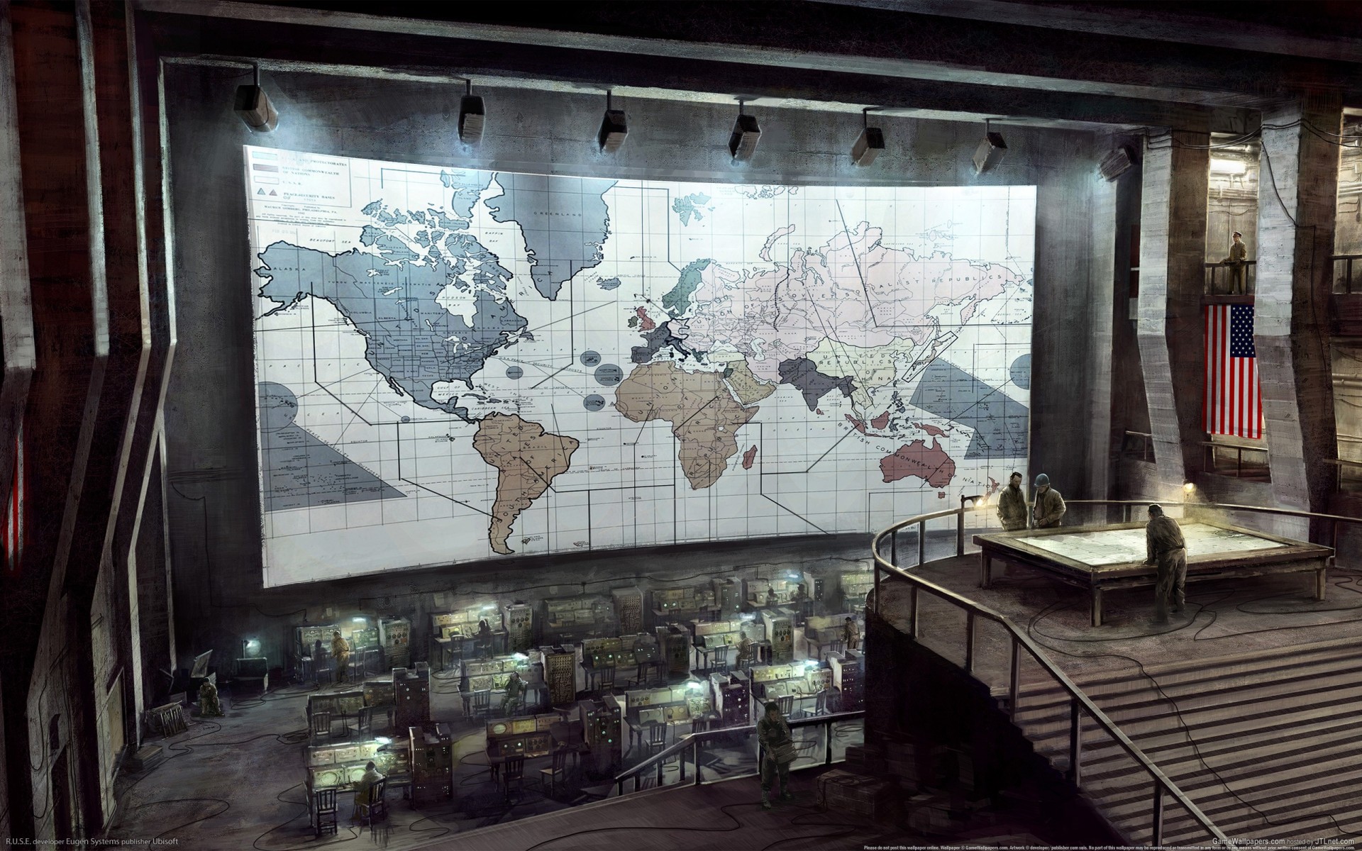 Das amerikanische Hauptquartier. Karte mit Strategie