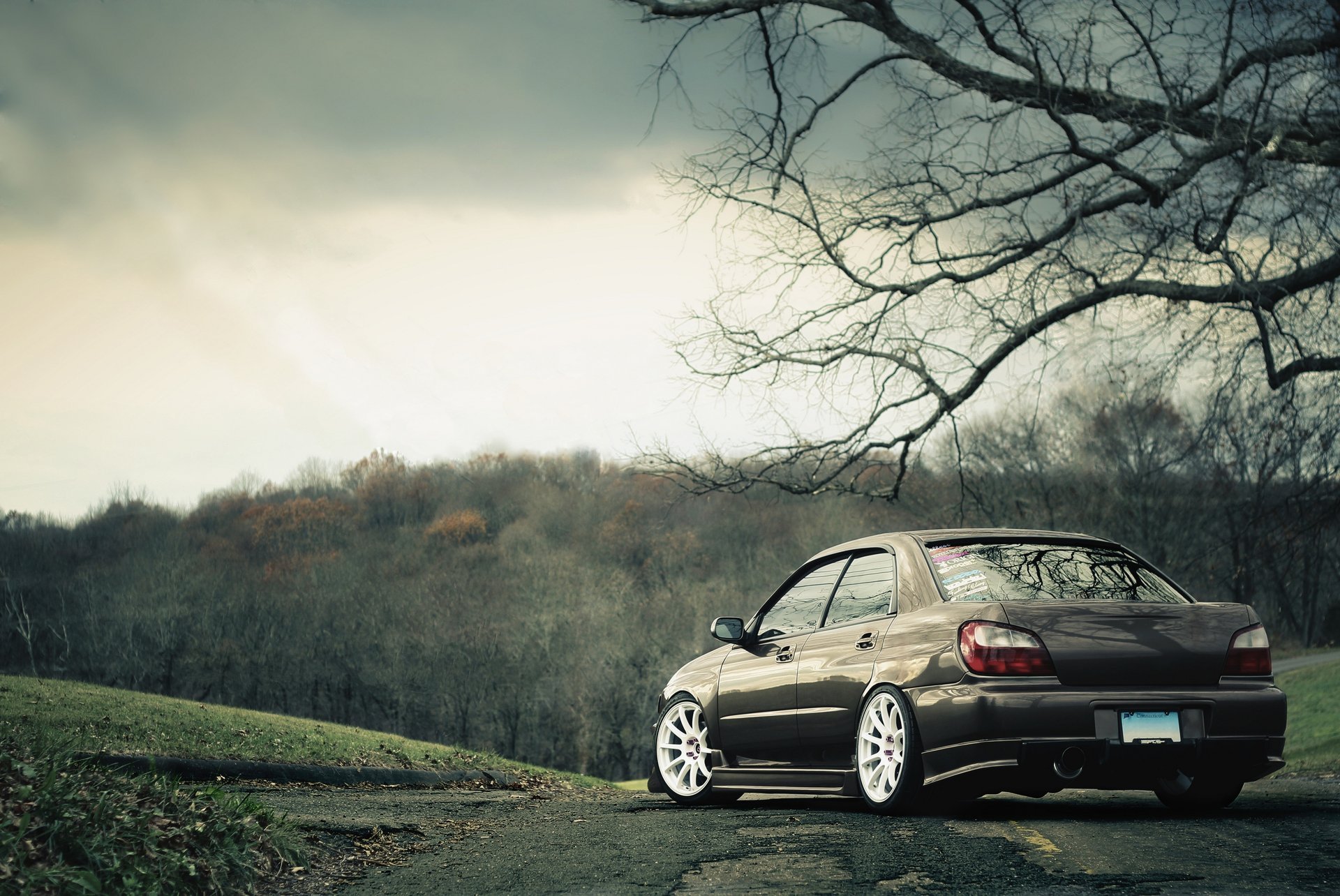 Ein blaues Auto fährt mit Geschwindigkeit eine scharfe Kurve