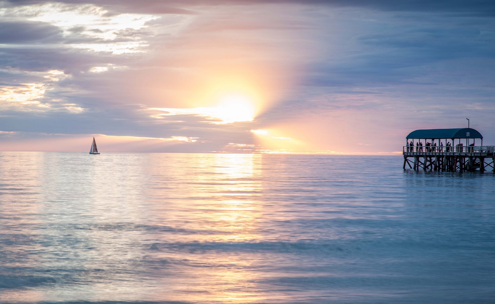 Sonnenuntergang am Meer mit Liegeplatz