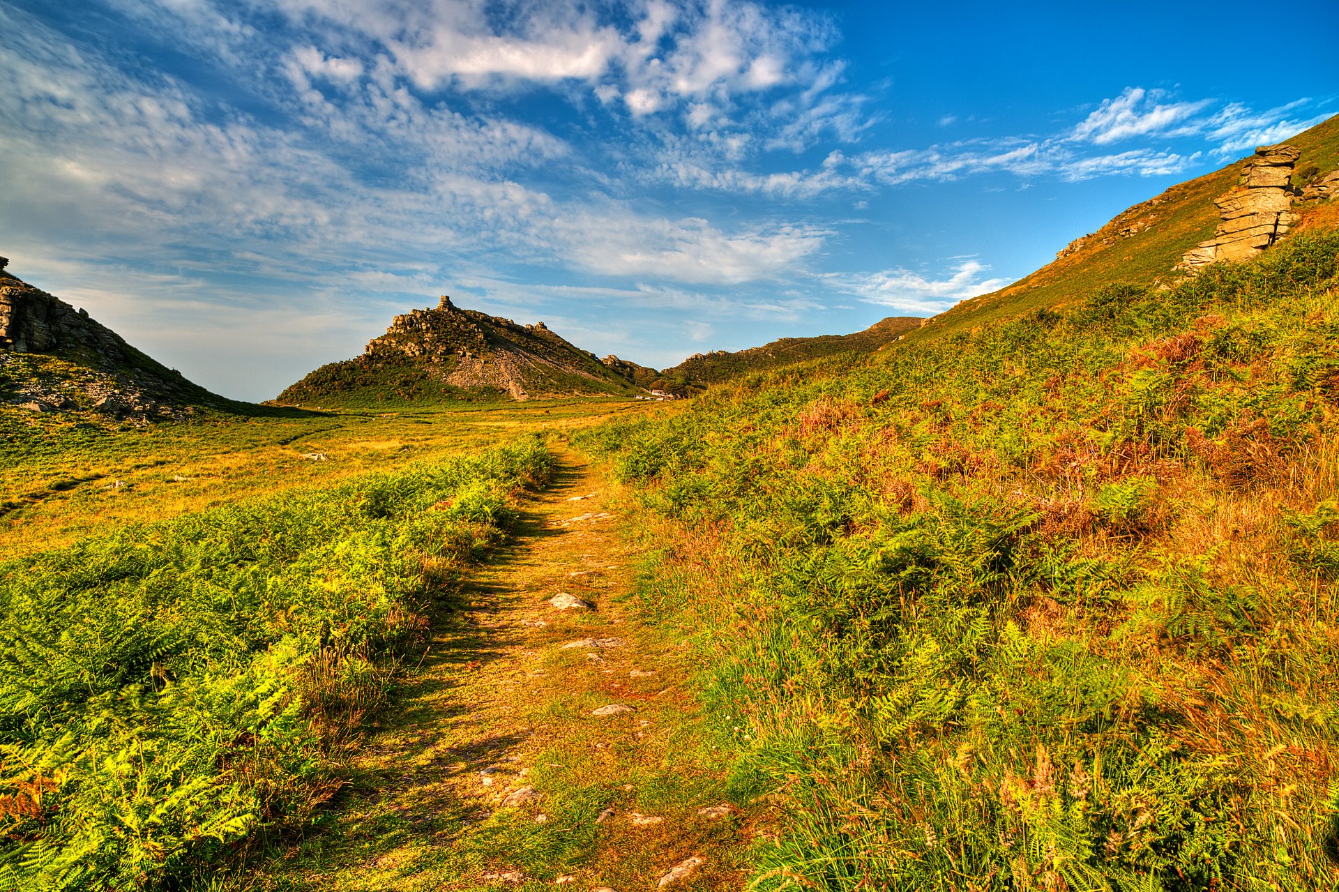 Wolken hängen über der Schlucht. Ein klarer Himmel blickt durch