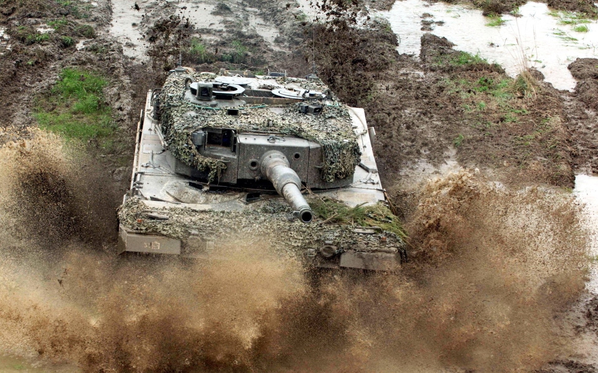 Tank auf dem Hintergrund eines schönen Sonnenuntergangs am Abend
