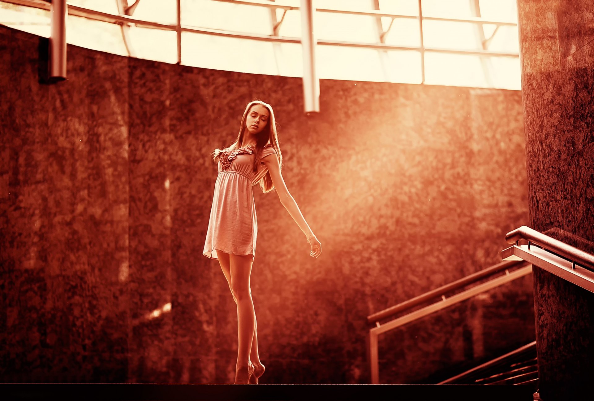 Mädchen tanzen im roten Raum