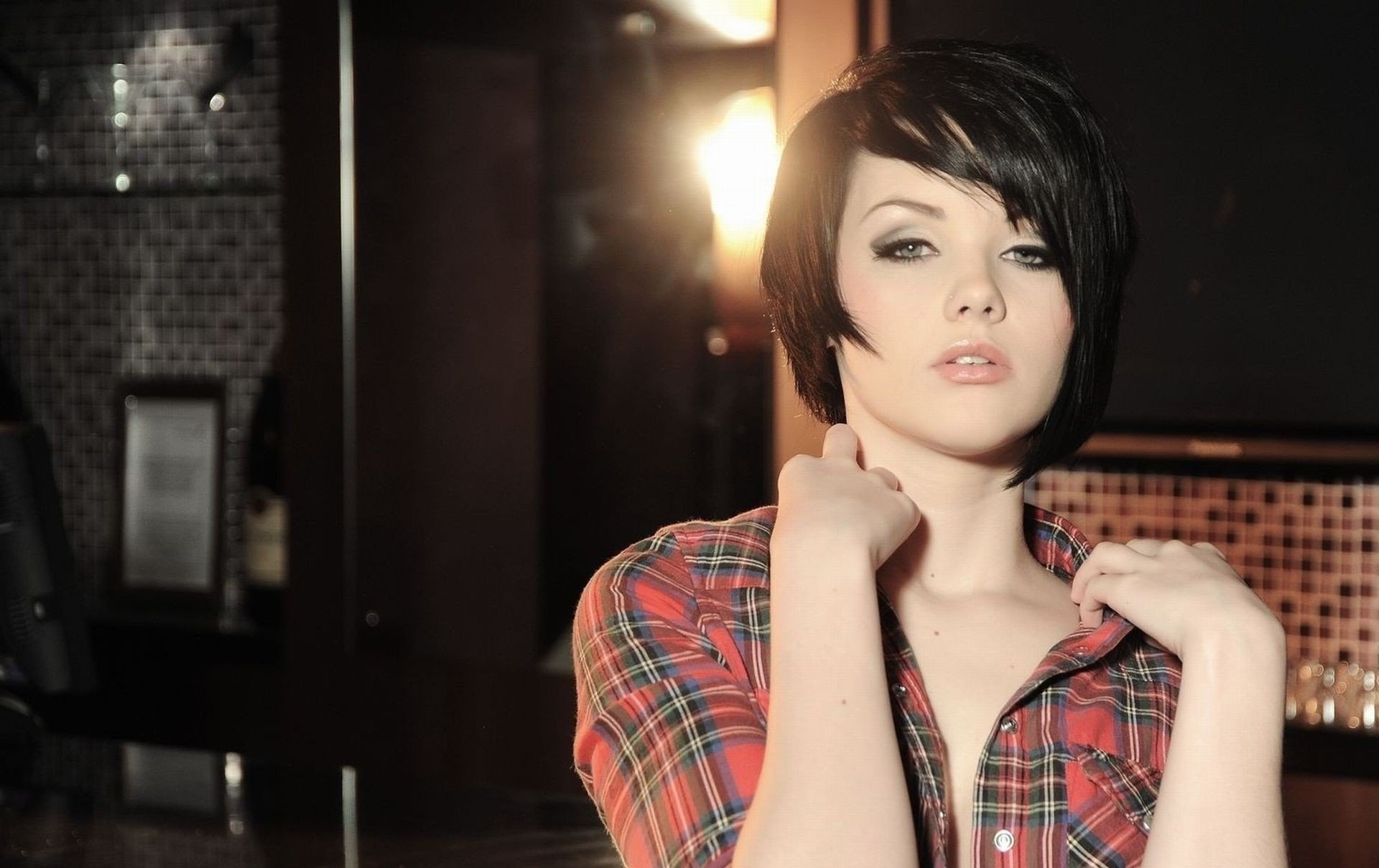Schönes Mädchen mit kurzen Haaren und Make-up
