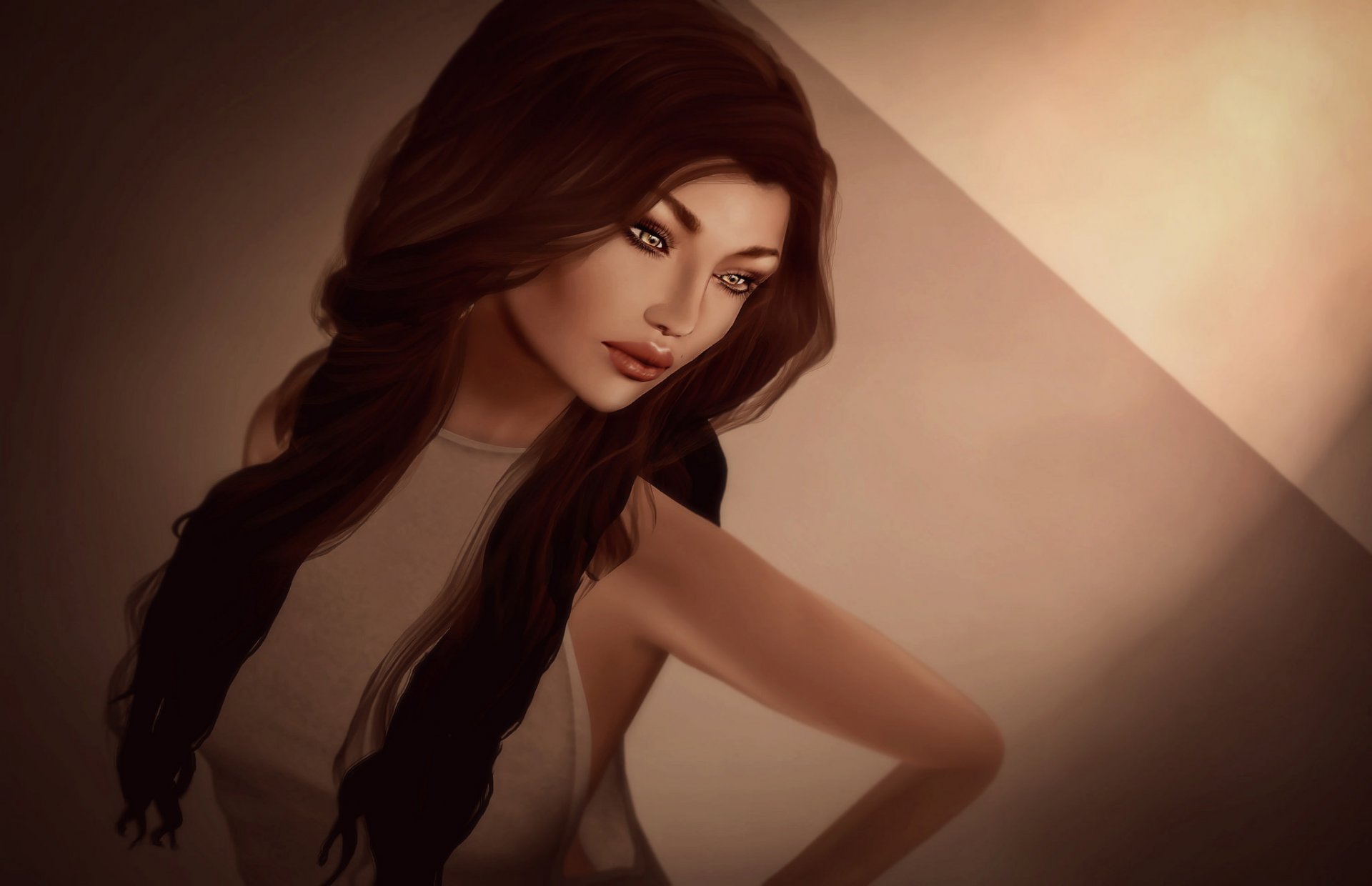 Eine Brünette mit einem durchdringenden Blick schaut von unten nach oben