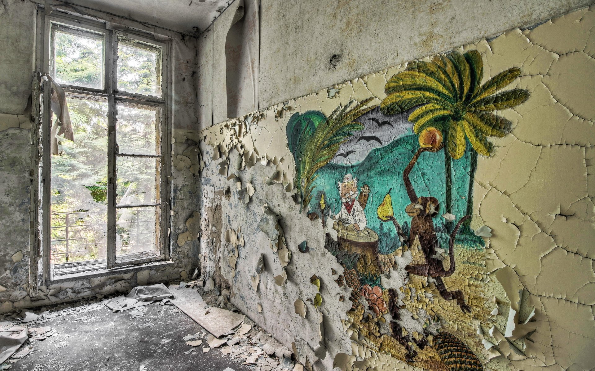 Zerstörtes Zimmer mit Fenster