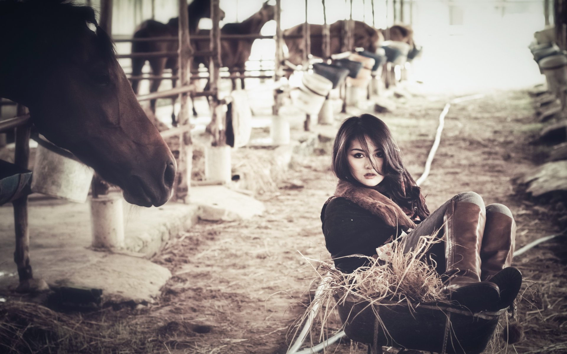 Braunhaarige in Jeans-Shorts beim Fotoshooting