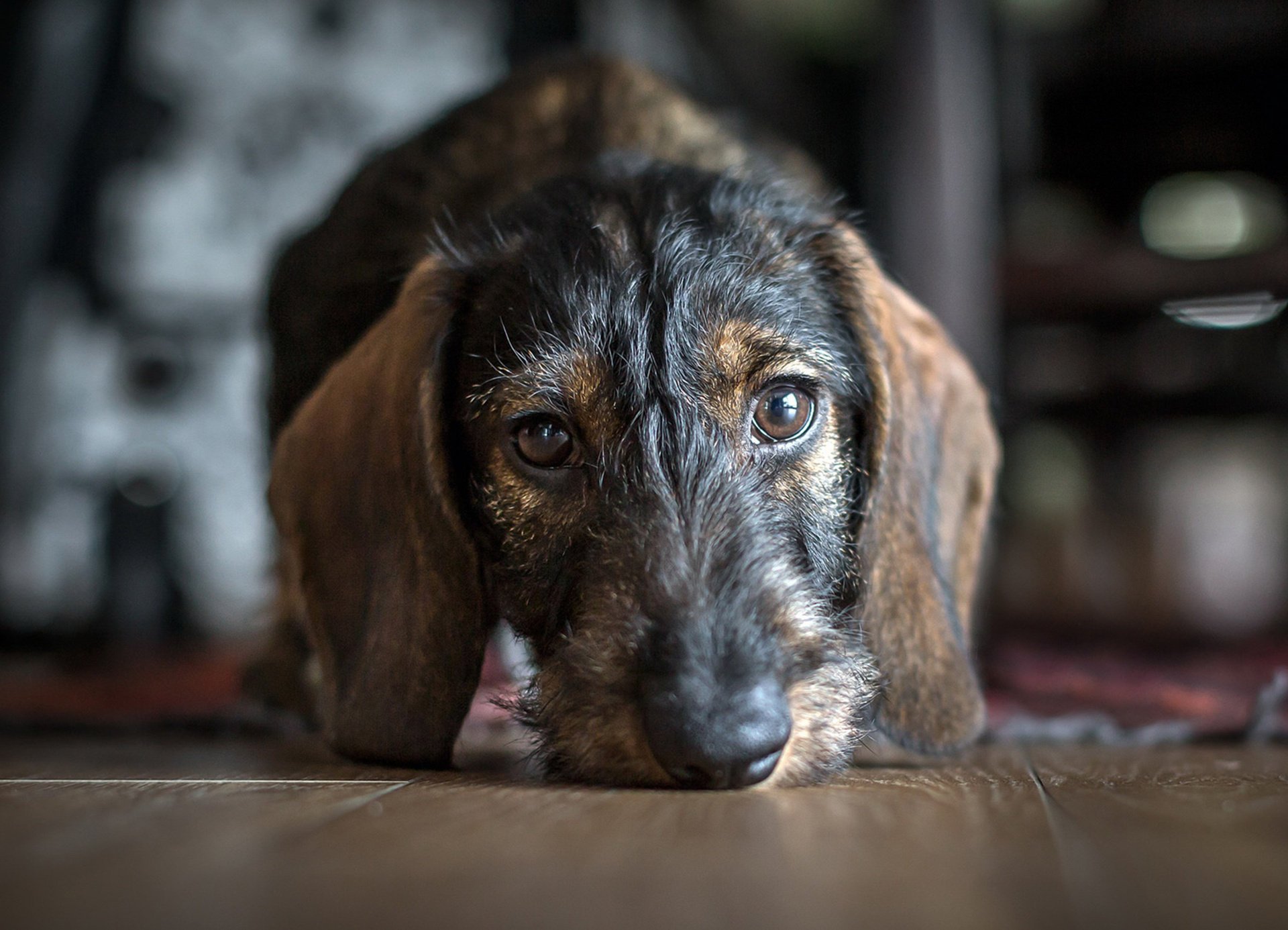 Weißer Retriever Hund im Urlaub. Schielen in der Sonne