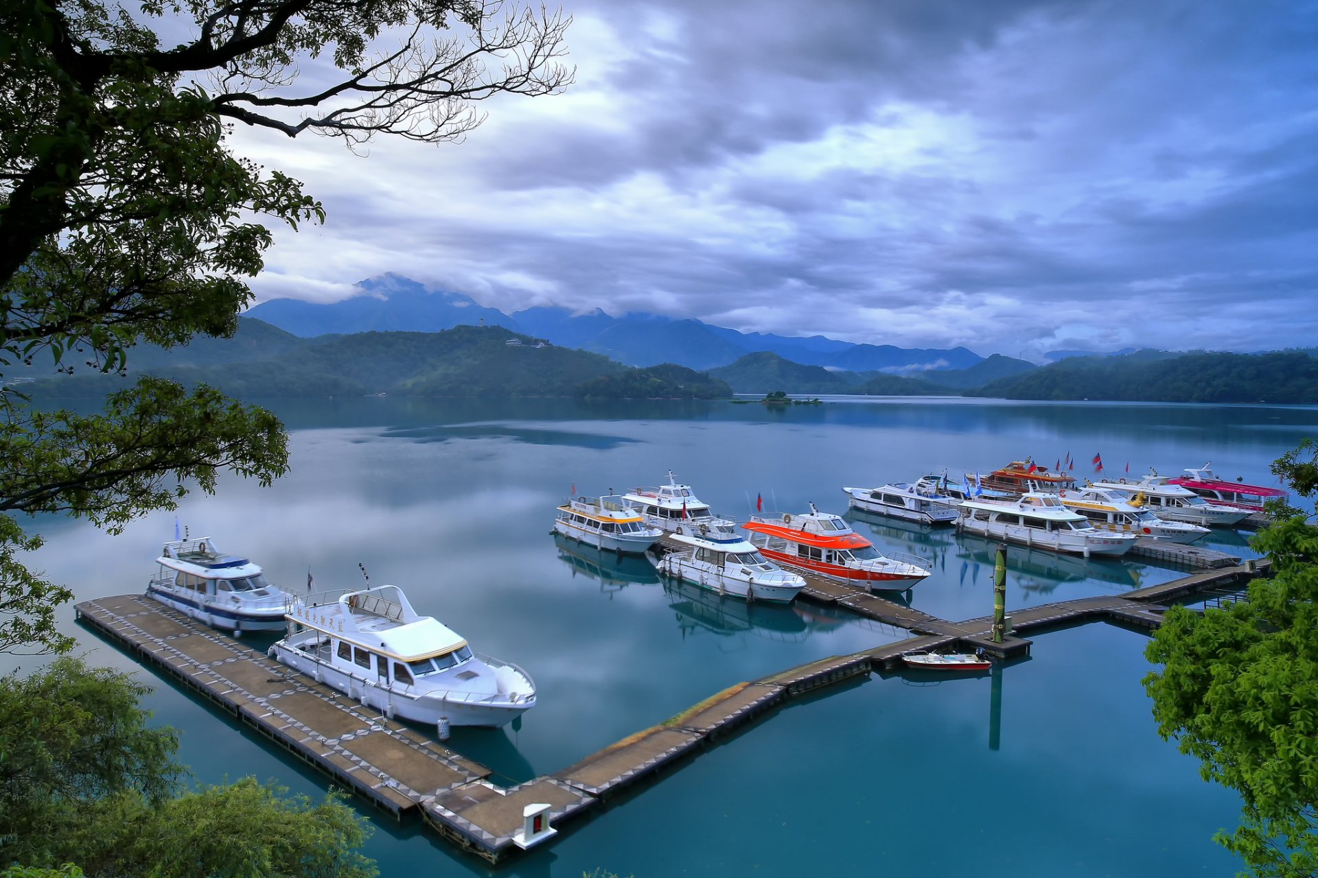Boote an der Anlegestelle des Bergsees
