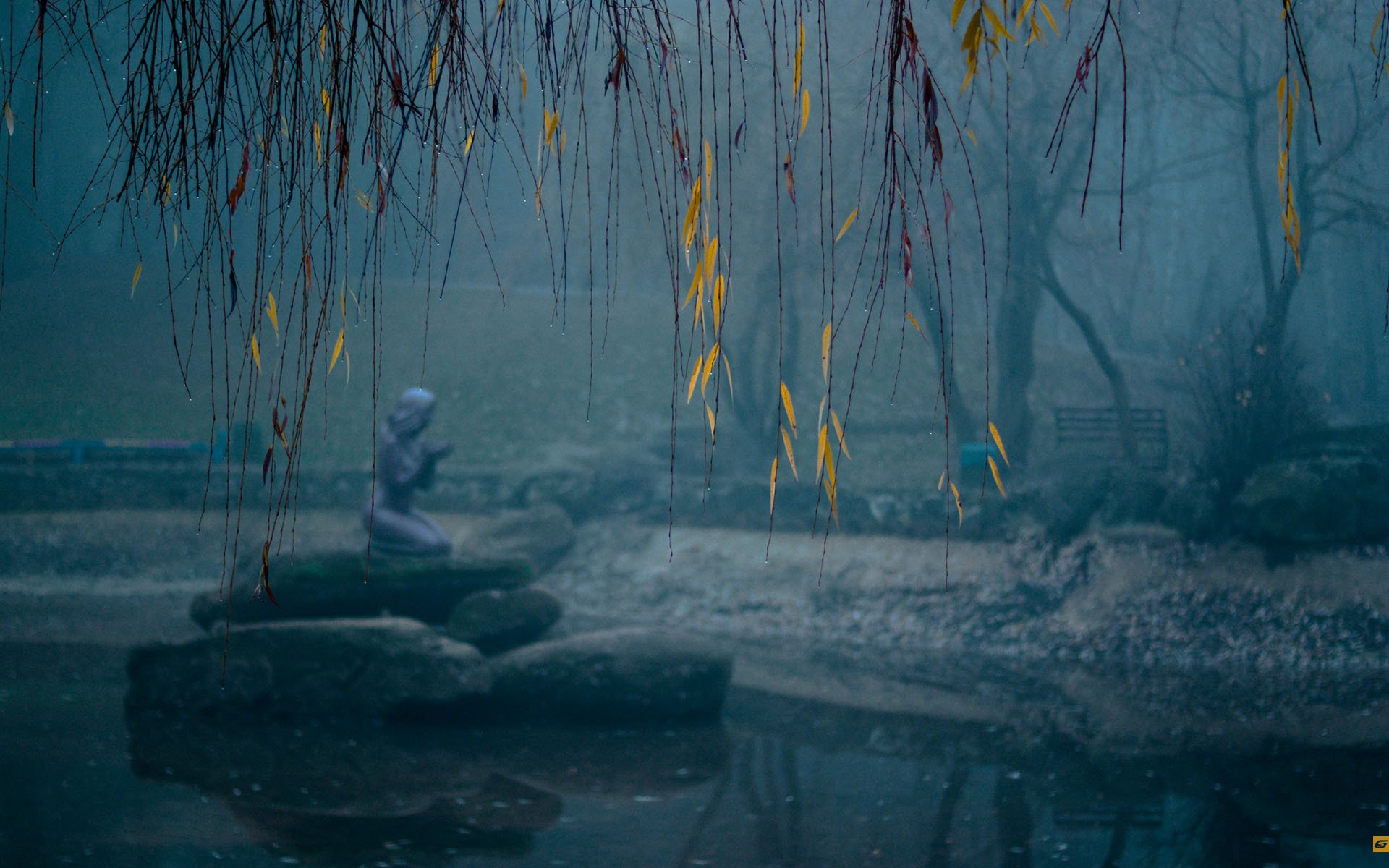 Kampf der Mädchen auf einem Motorrad mit einem dunklen Soldaten