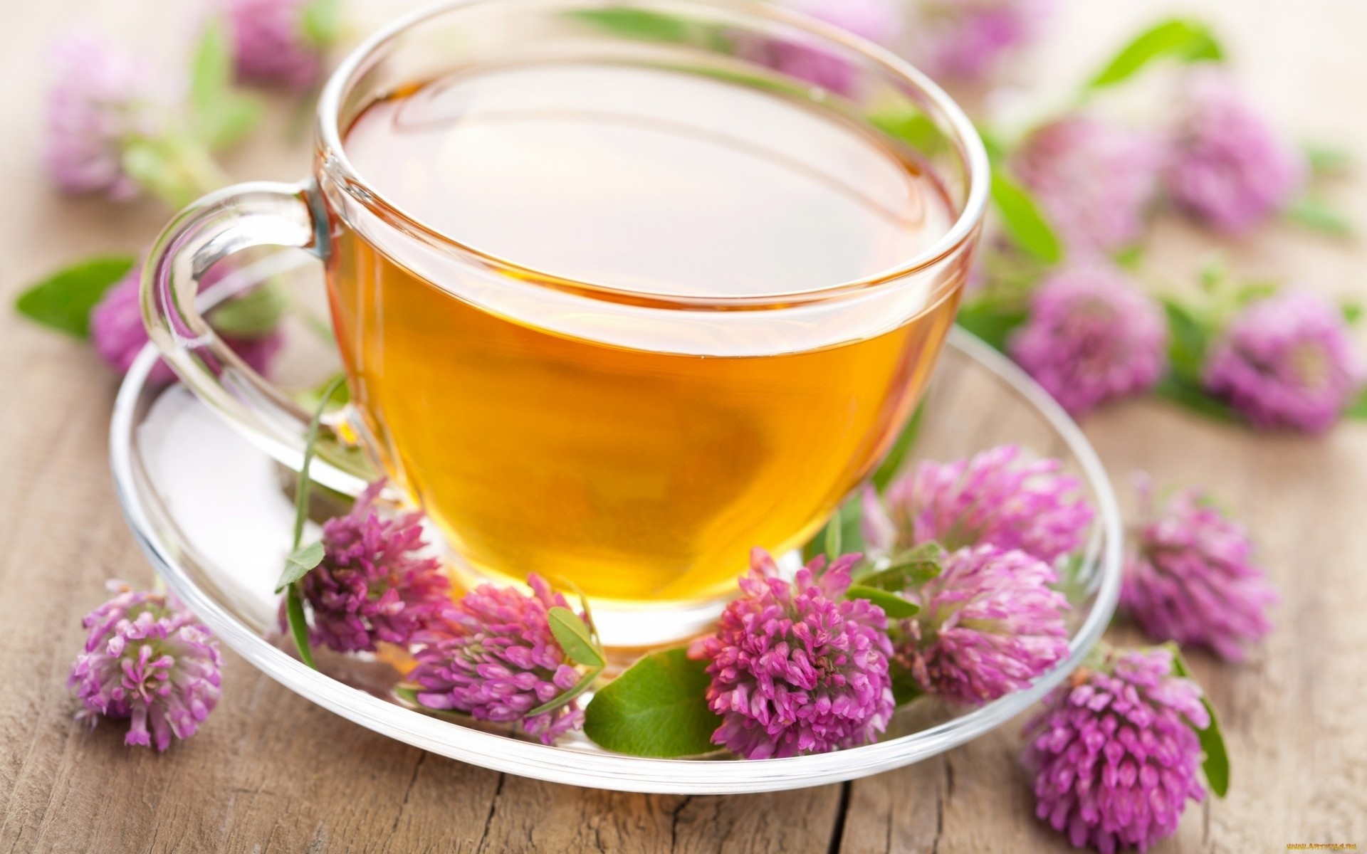 Komposition aus einer Untertasse mit einer Tasse mit Beeren verziert
