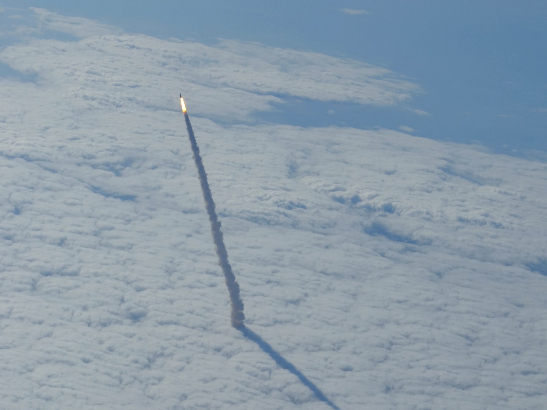 Kampfflugzeug hebt vom Flughafen ab und hinterlässt Spuren