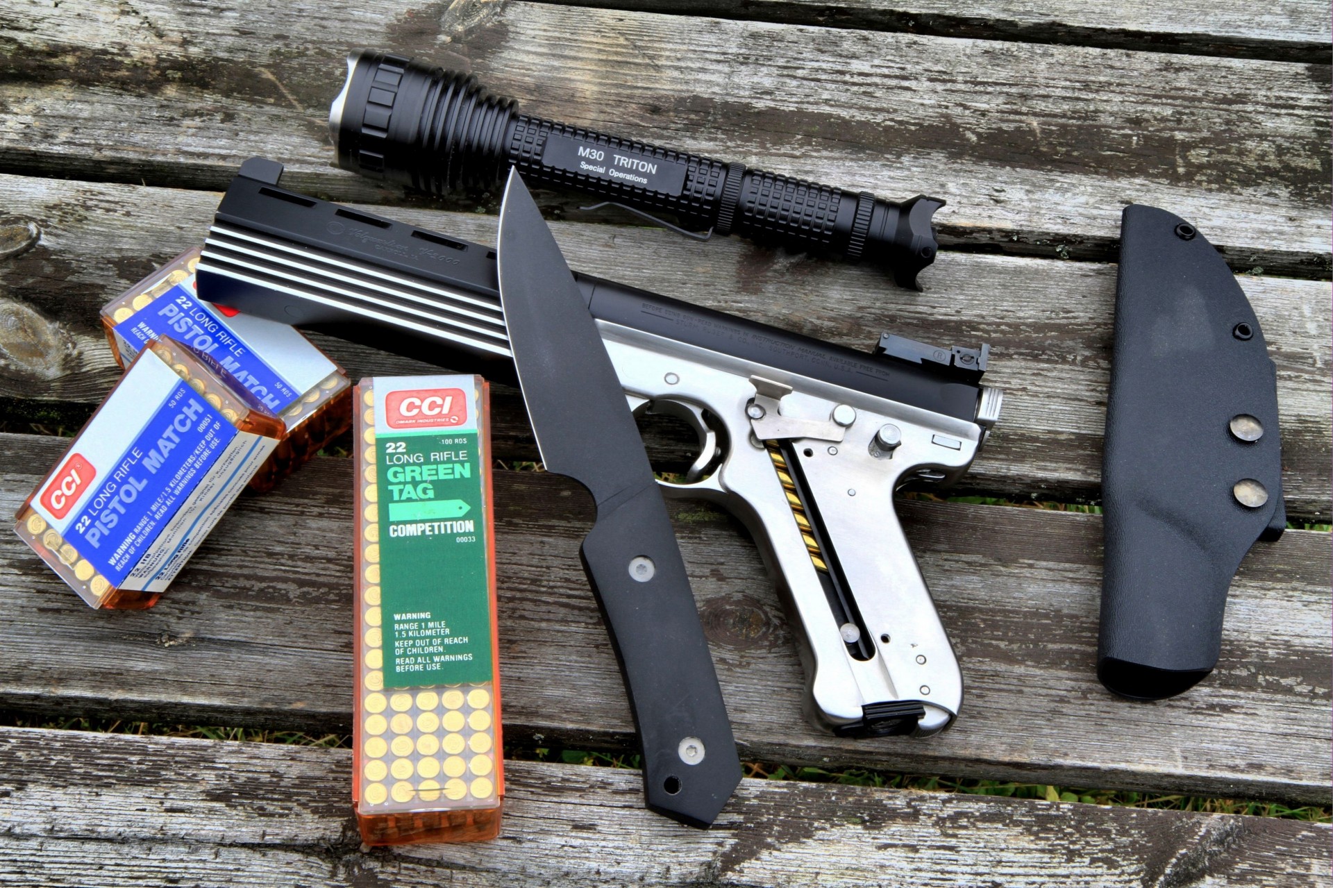 Verschiedene Waffen und Gegenstände auf dem Tisch