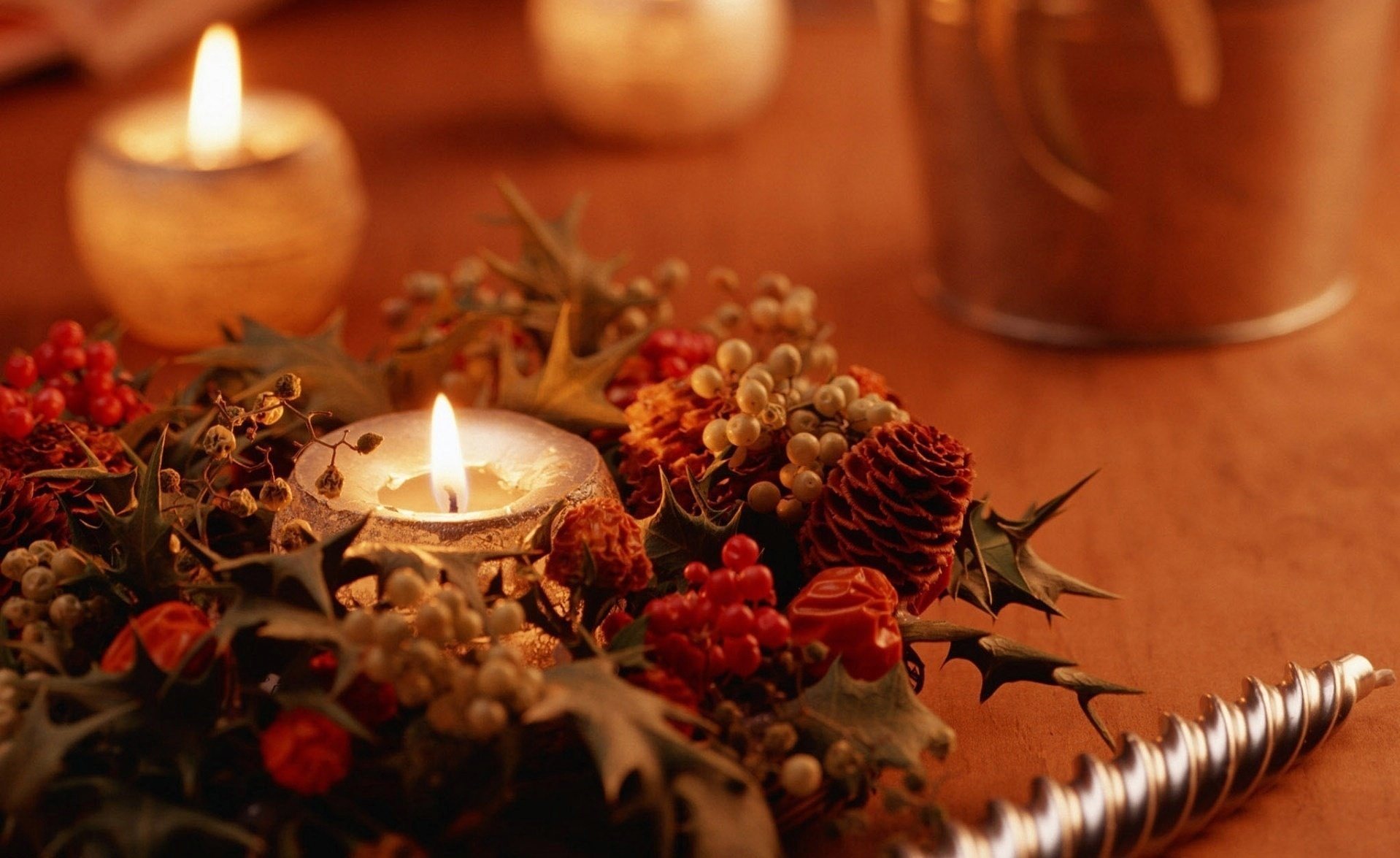 Warme Kerzen zu Weihnachten auf dem Tisch