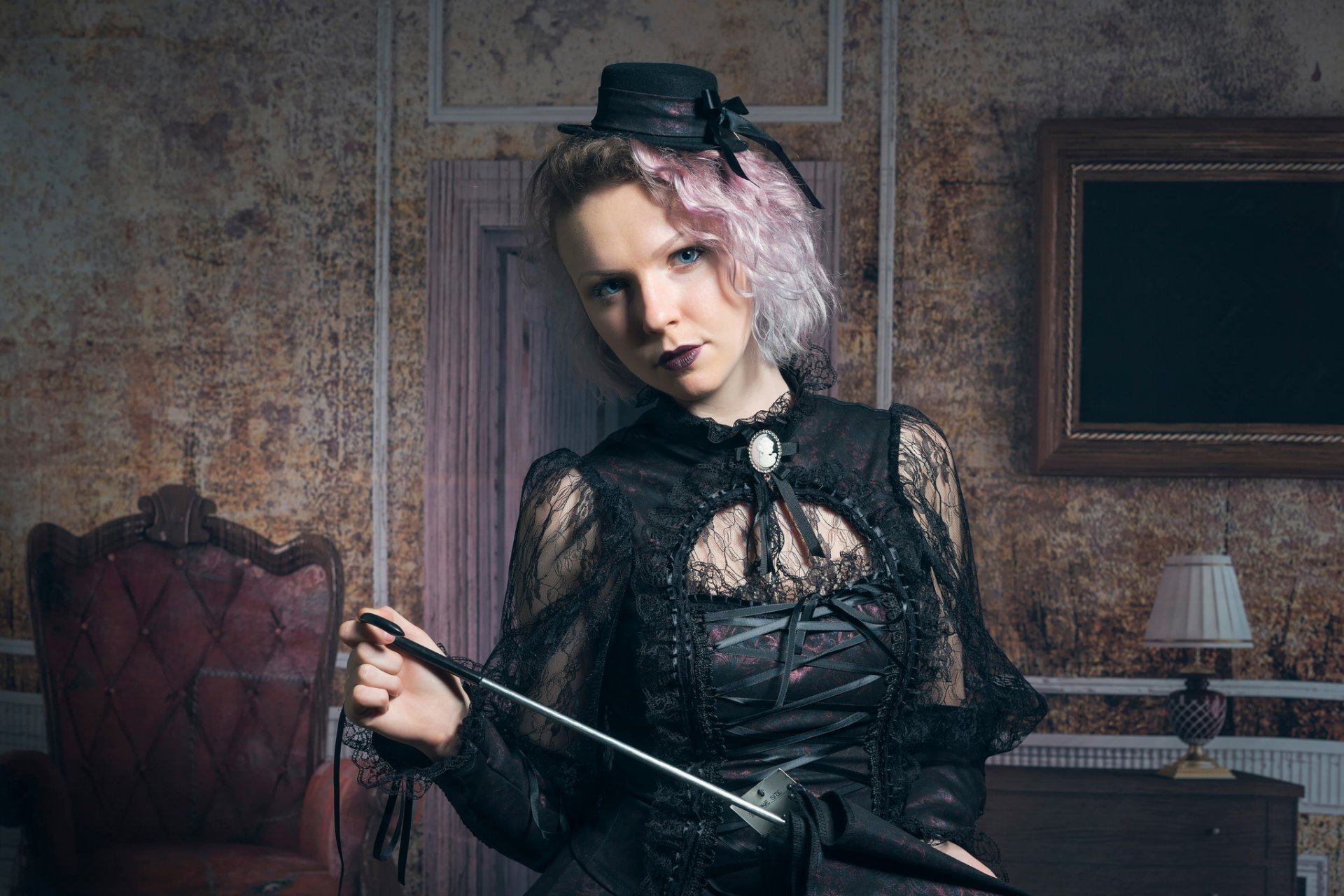Mädchen auf einem schwarzen Hintergrund mit einem schönen Mock-up