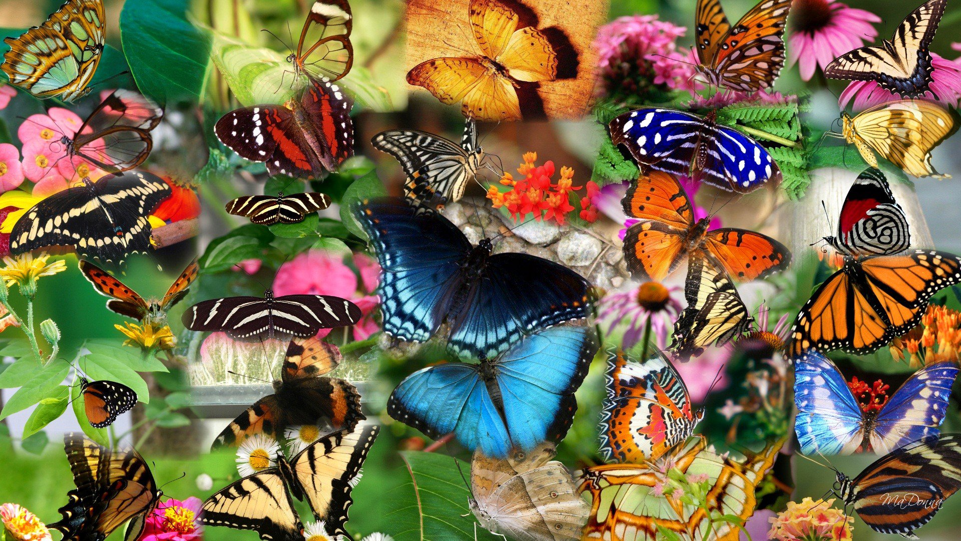 Collage aus schönen Schmetterlingen und anderen Insekten