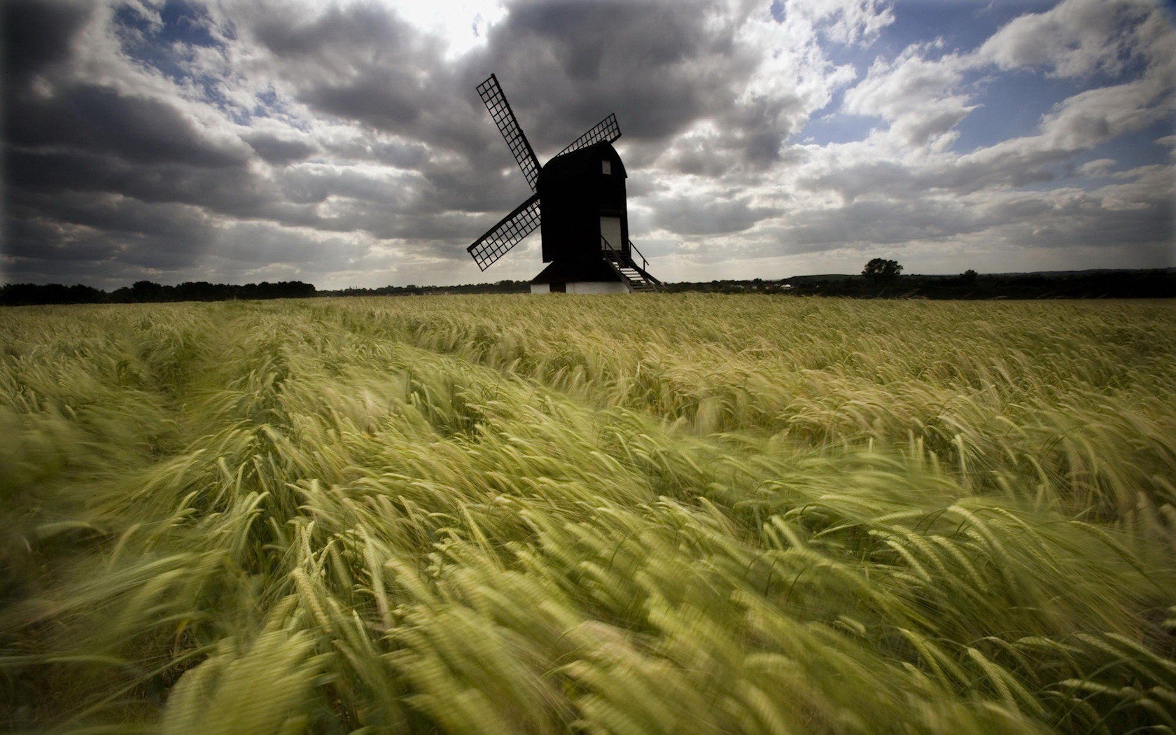 Das Gras entwickelt sich im Wind bei Sonnenuntergang