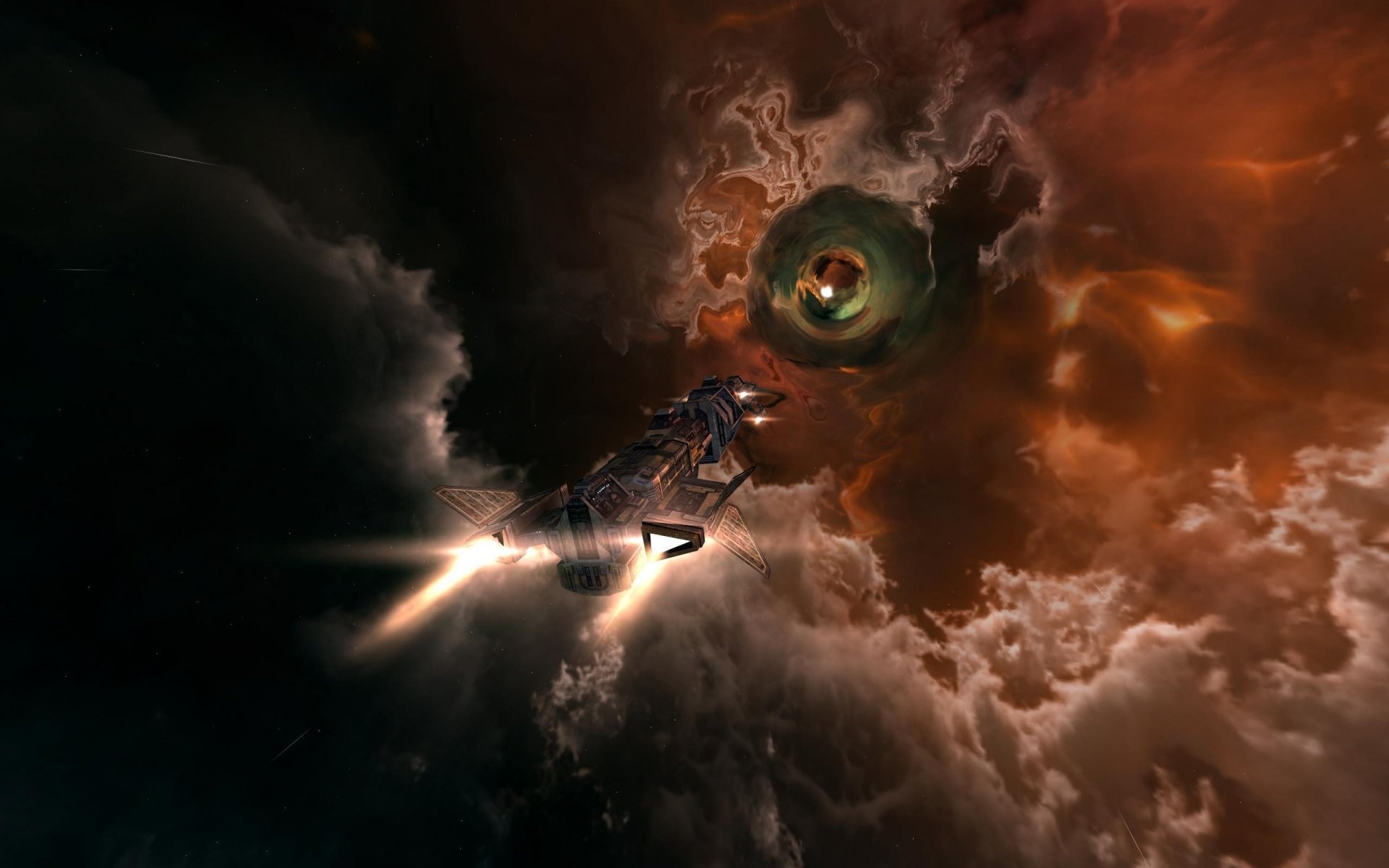 Das Schiff bewegt sich in ein schwarzes galaktisches Loch