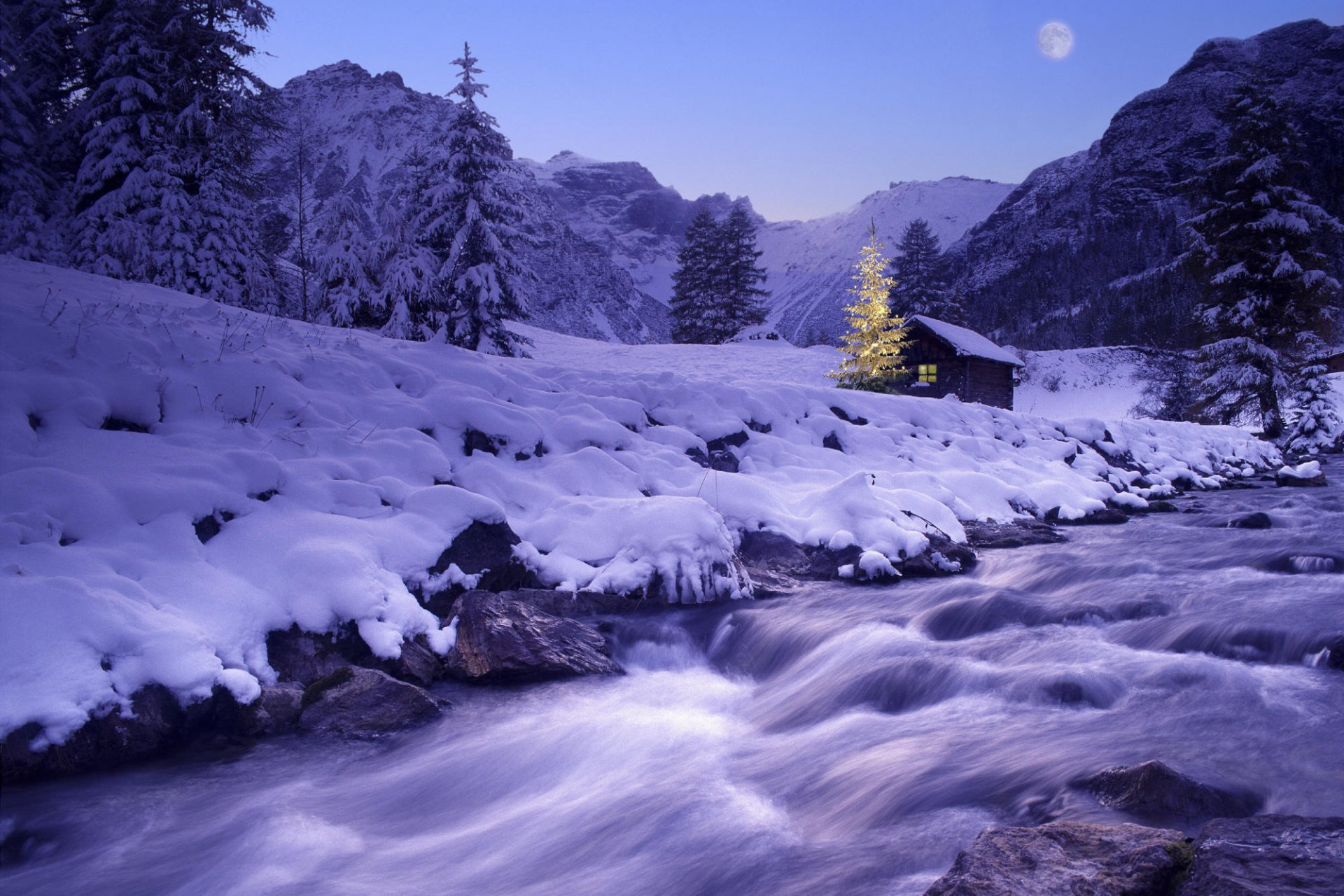 Silvester Fluss in der Nacht im Winter