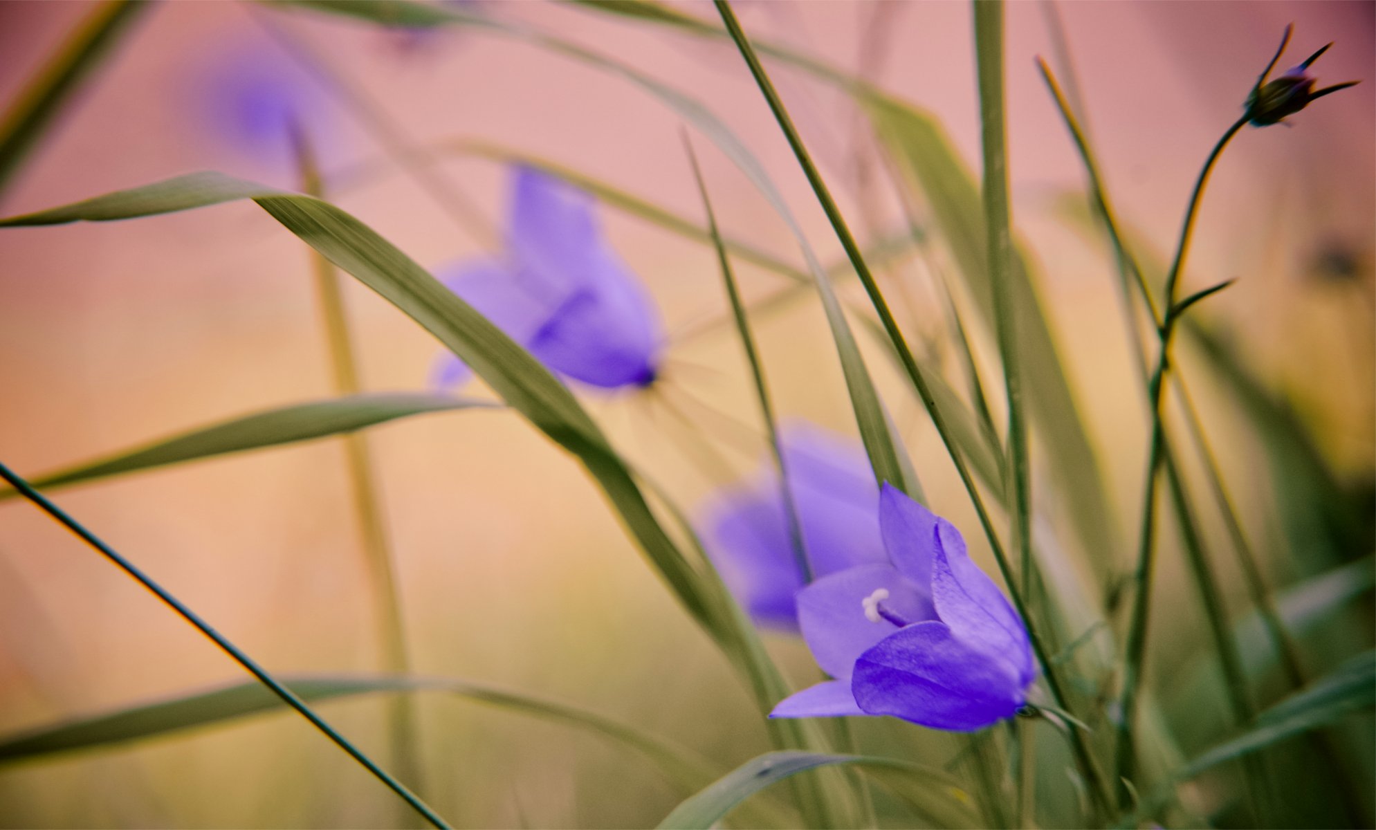 Zarte violette Blumen auf einem Texthintergrund mit einem unscharfen Hintergrund