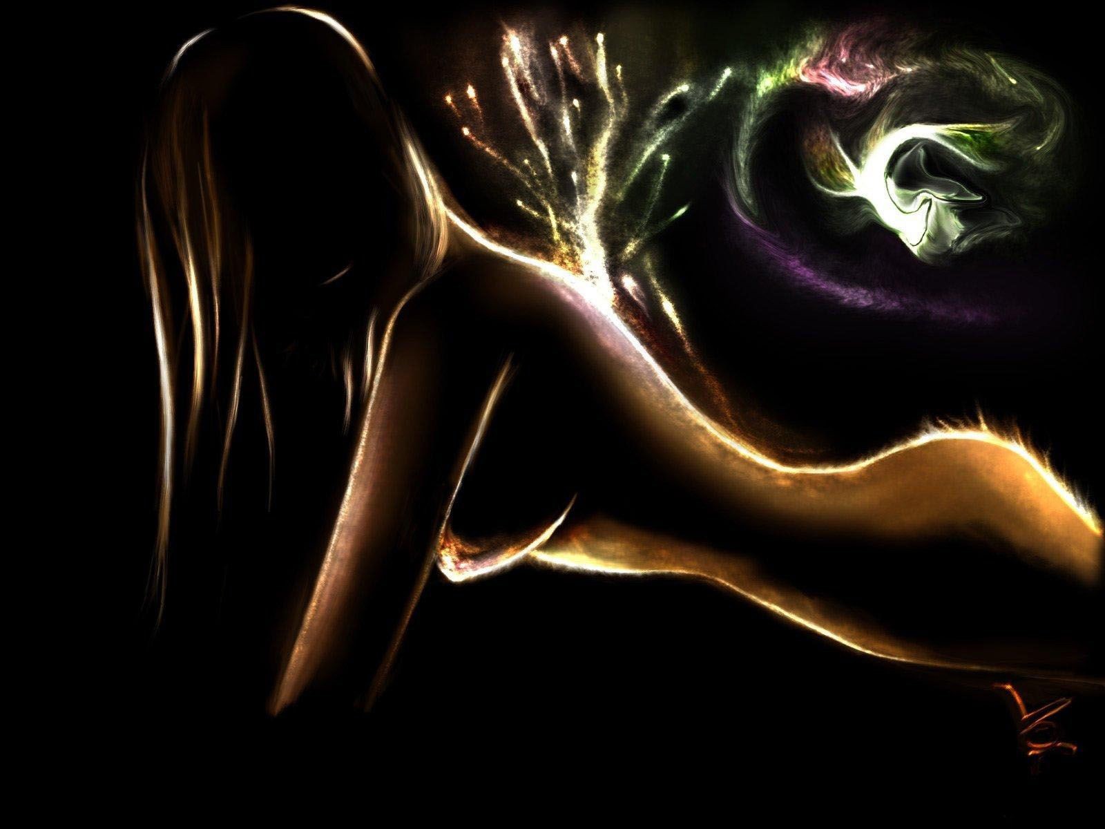 Zeichnung eines schönen Mädchens mit einem goldenen Schein