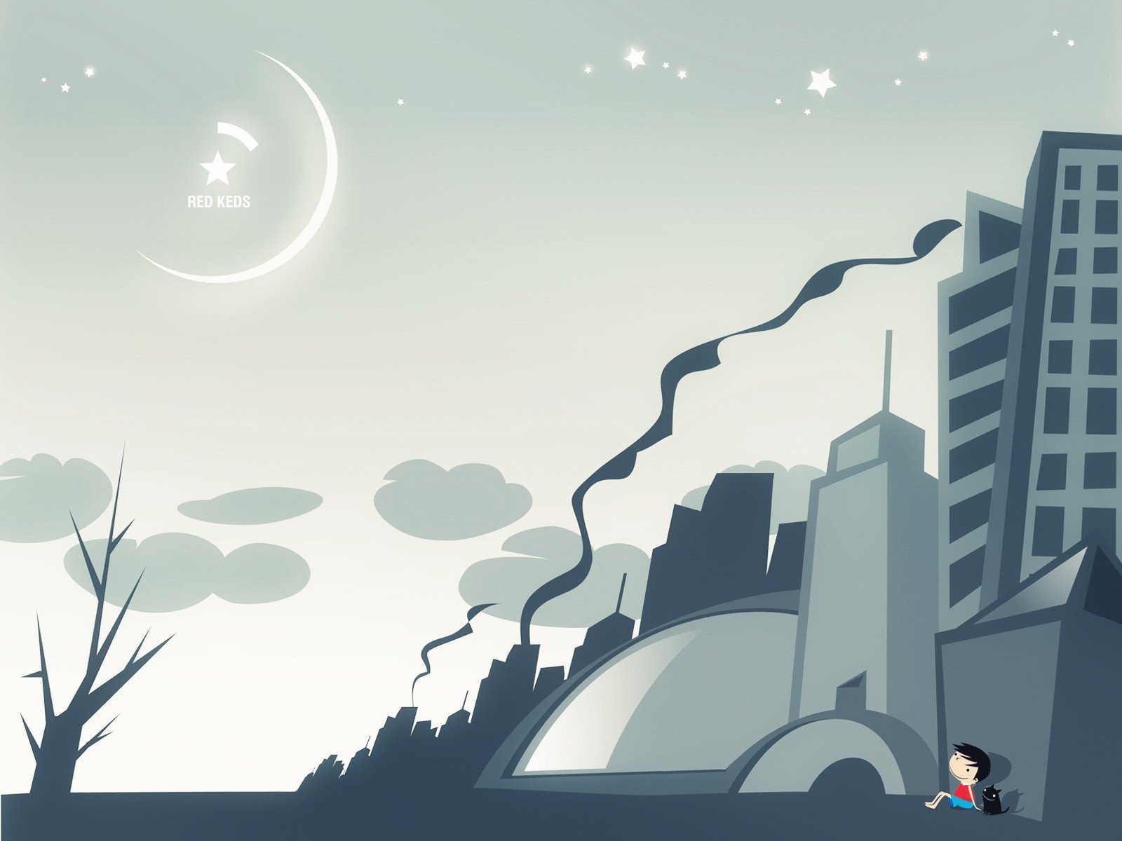 Vektor-Zeichnung eines Jungen mit einer schwarzen Katze in der Stadt
