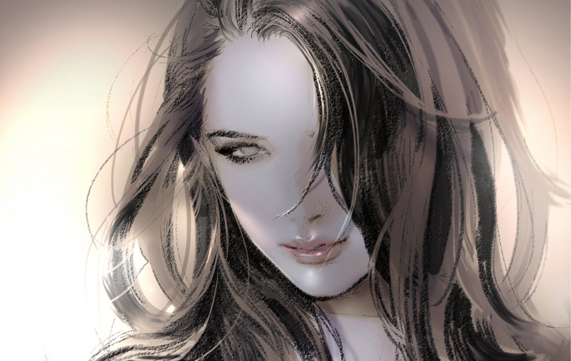 Zeichnung eines lächelnden Mädchens in Nahaufnahme