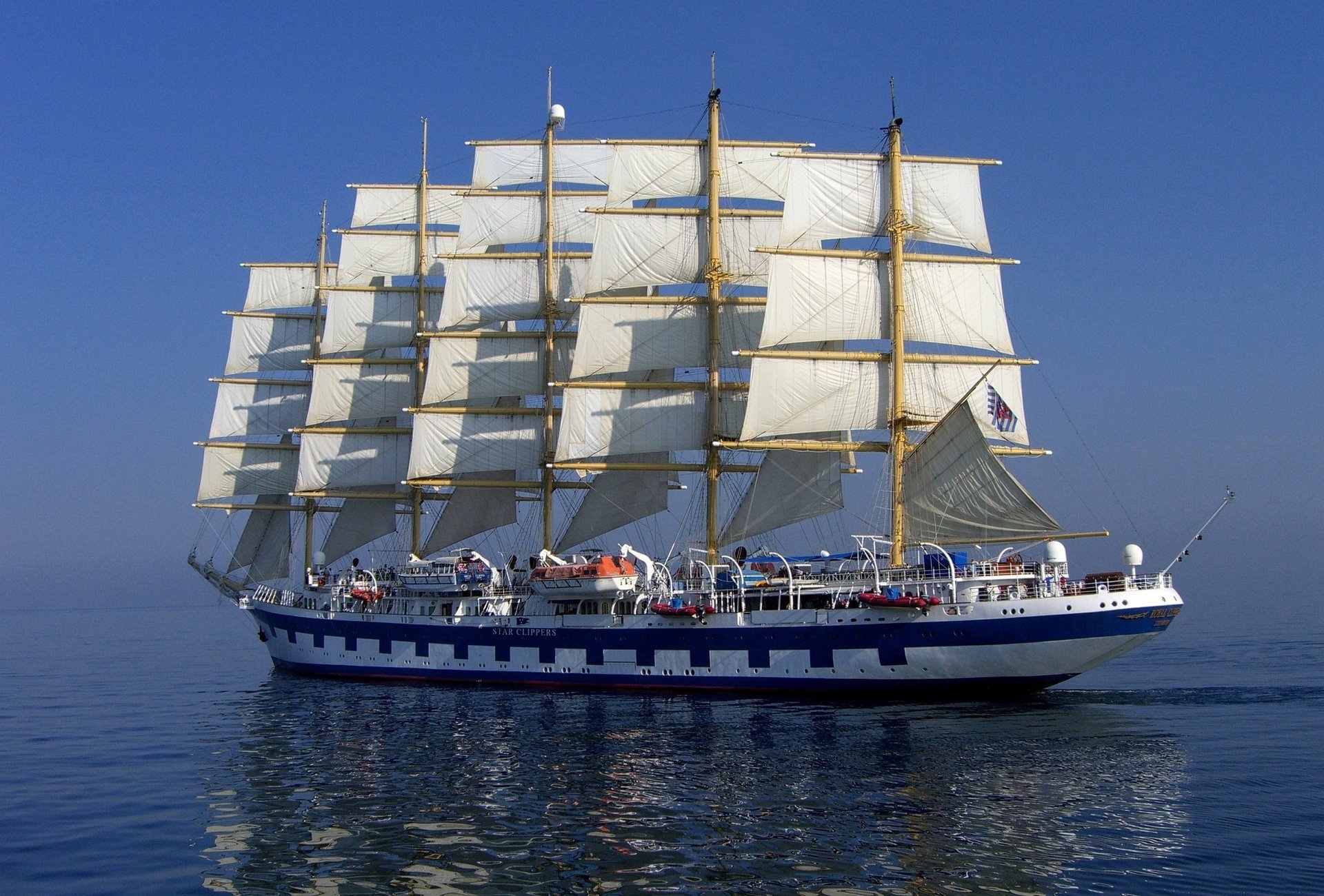 Ein Meer mit einem Sturm und einem Schiff mit weißen Segeln