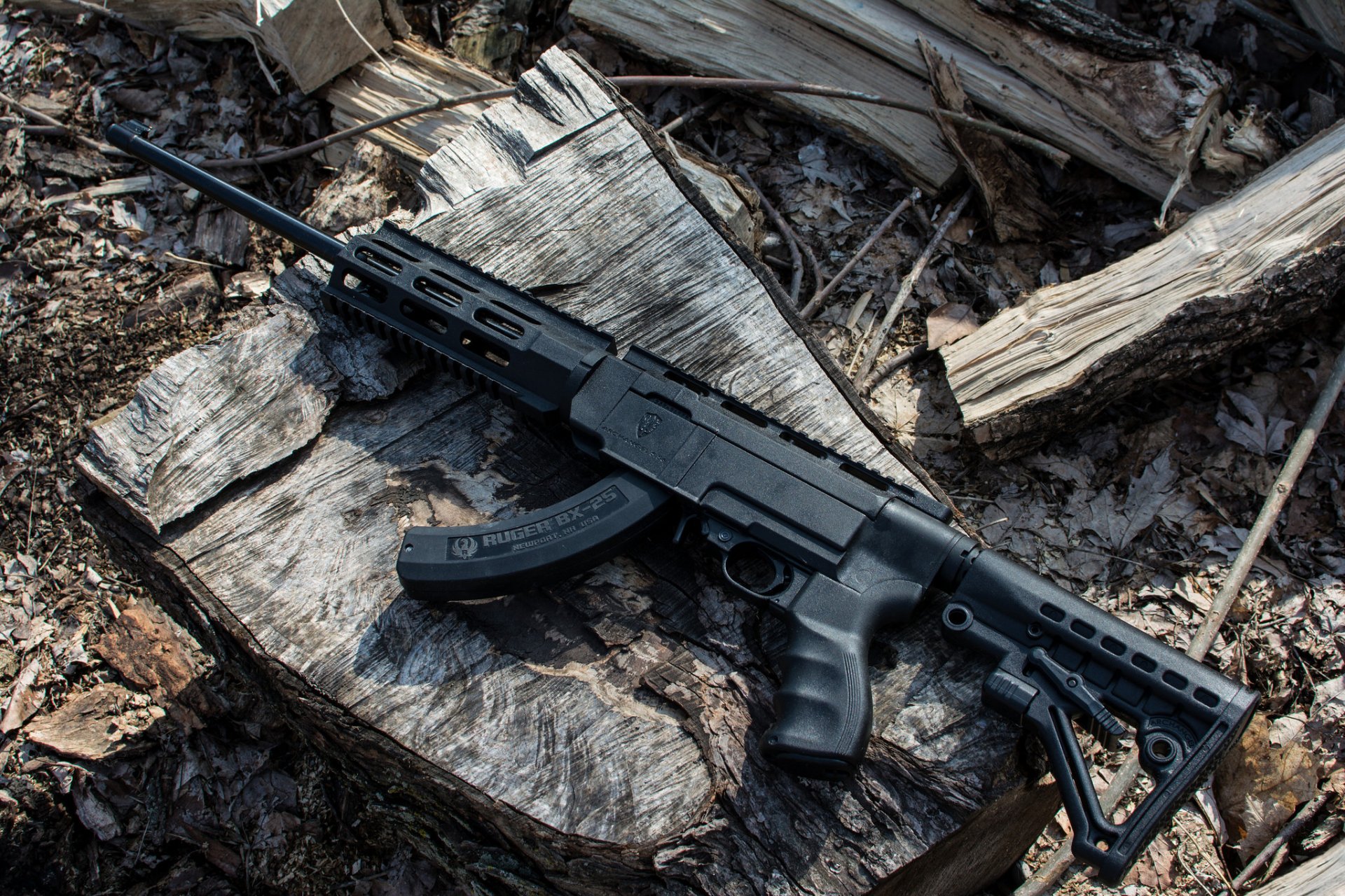 Zwei schwarze Polizeipistolen auf blauem Stoffhintergrund