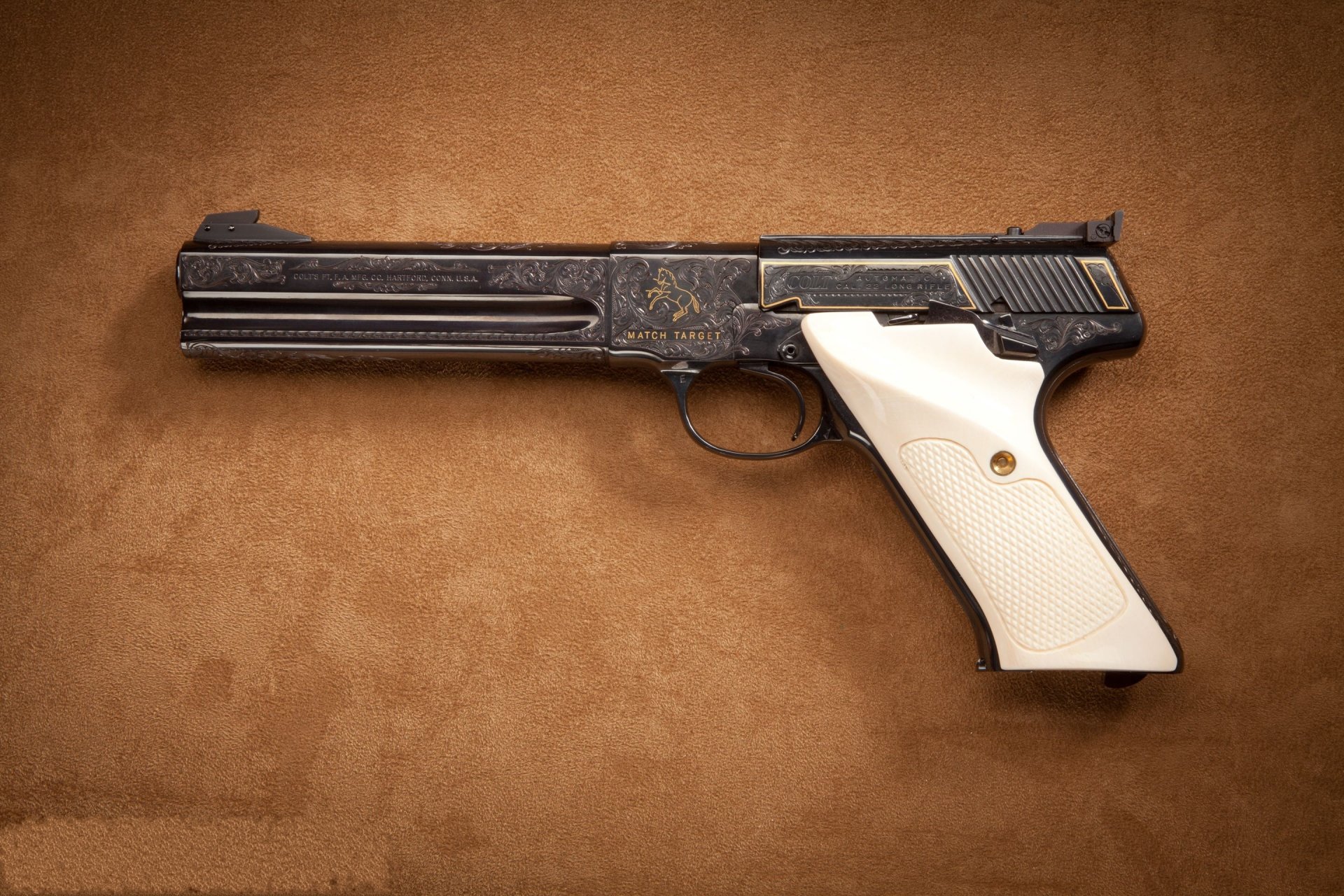 Schwarze pistole auf dem hintergrund der buchstabenSchwarze Pistole auf dem Hintergrund der Buchstaben