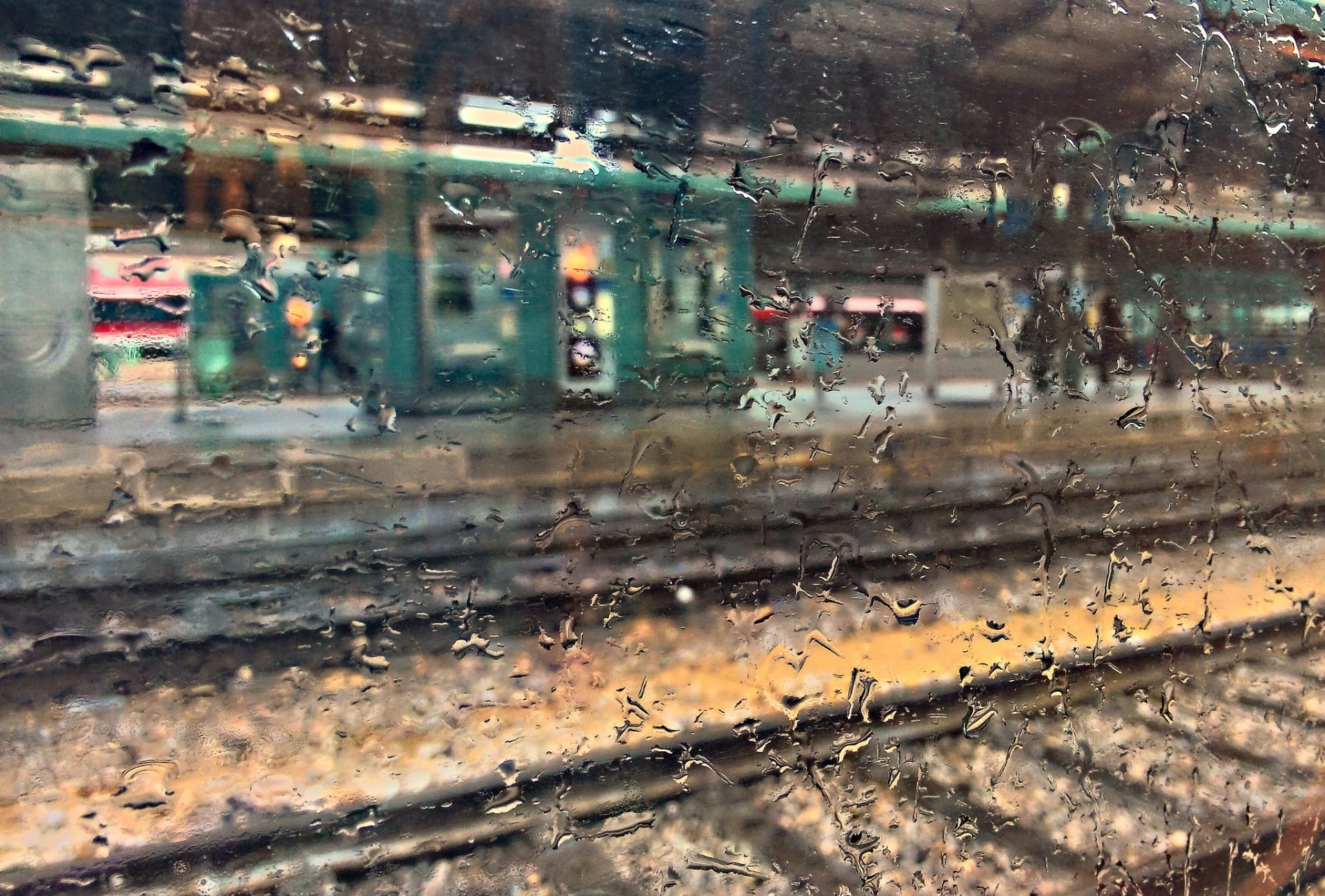Ein hochgeschwindigkeitszug und ein mädchen am bahnhofEin Hochgeschwindigkeitszug und ein Mädchen am Bahnhof