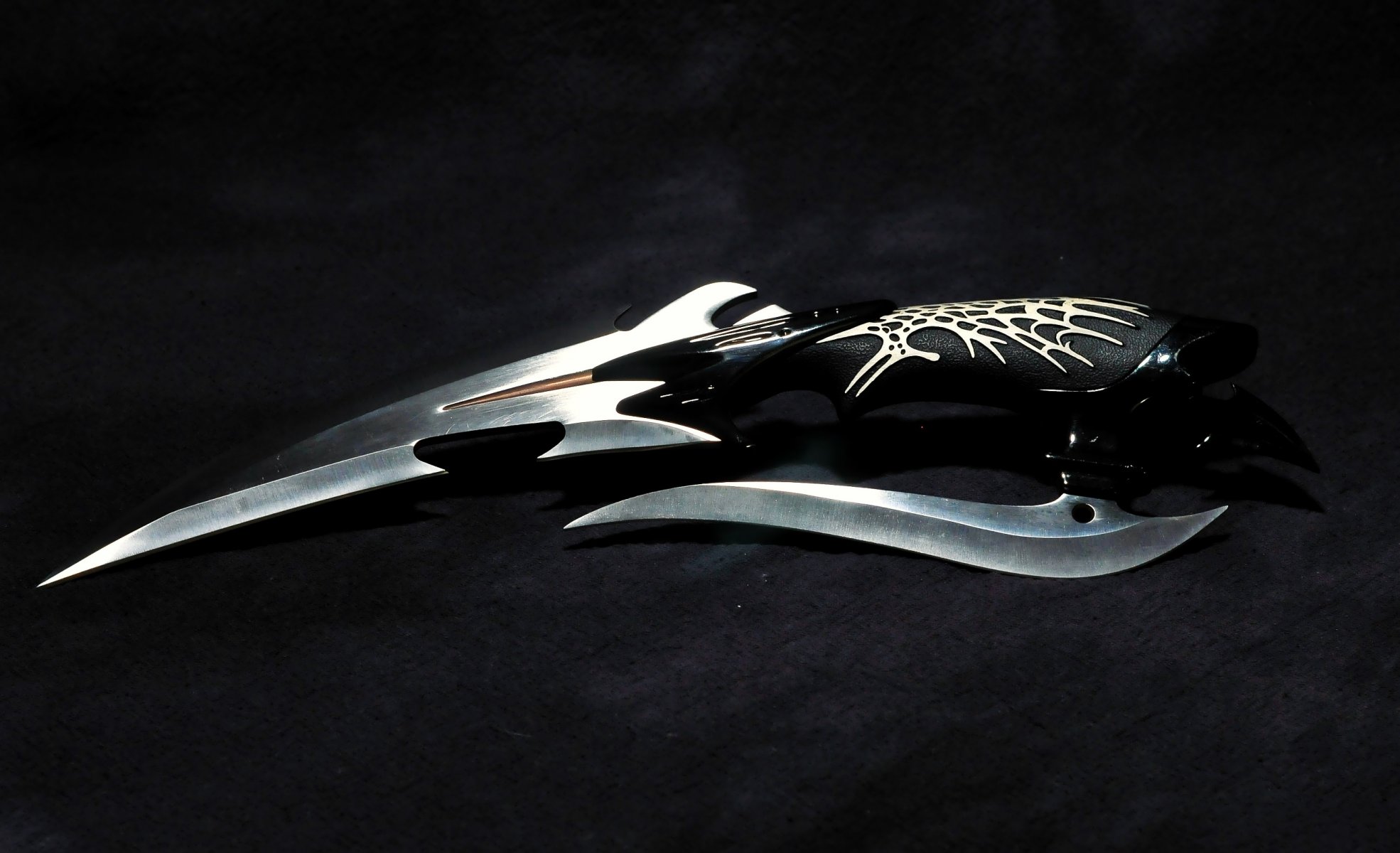 Ein mädchen mit einem dolch mit im wind flatternden haarenEin Mädchen mit einem Dolch mit im Wind flatternden Haaren