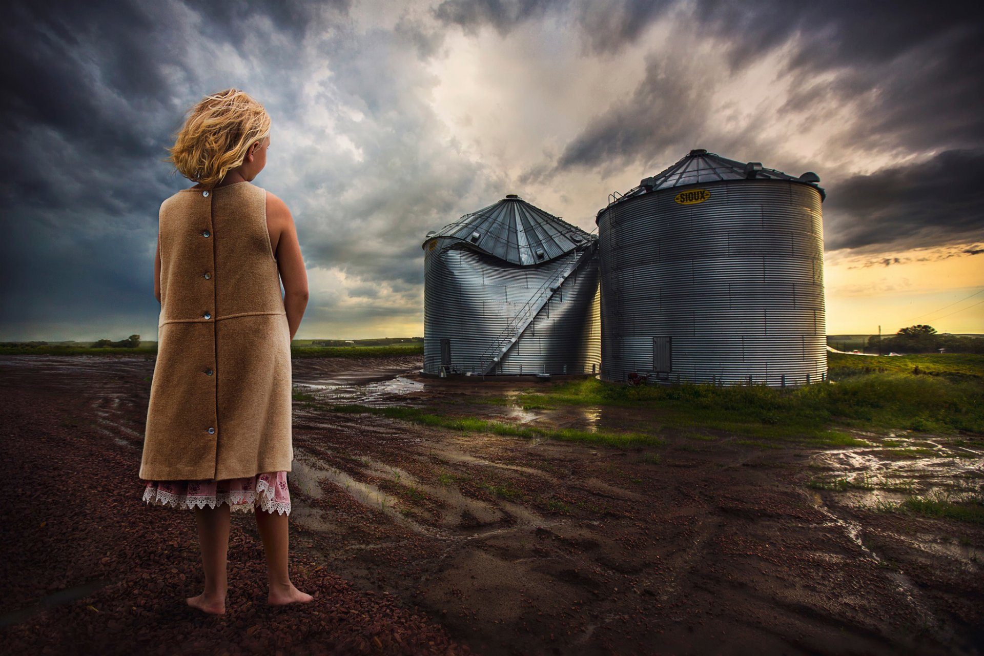 Die Folgen eines Tornados. Barfüßiges Mädchen nach einem Sturm
