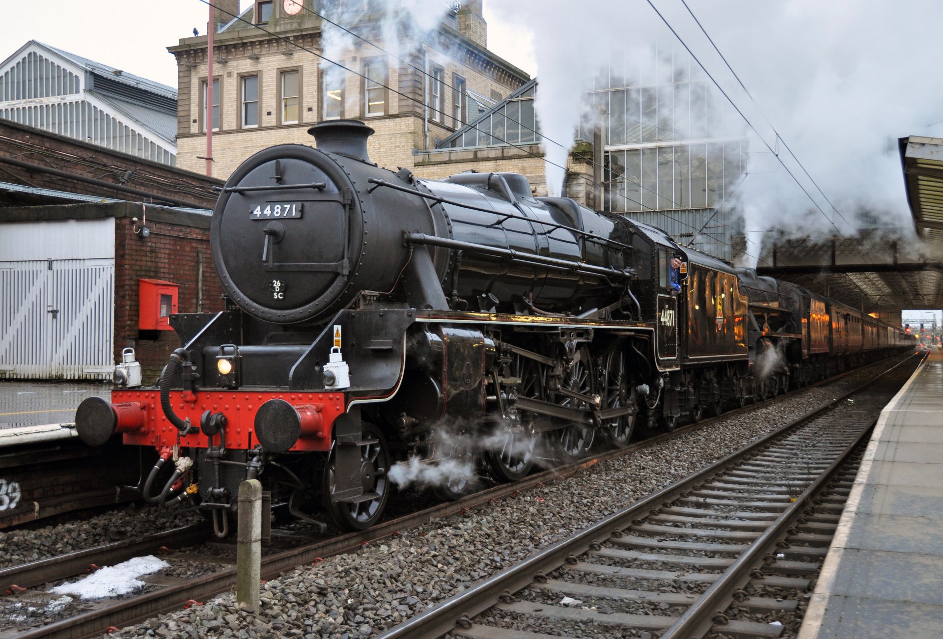 Ein Bild von einem Zug in einer Weihnachtsstadt