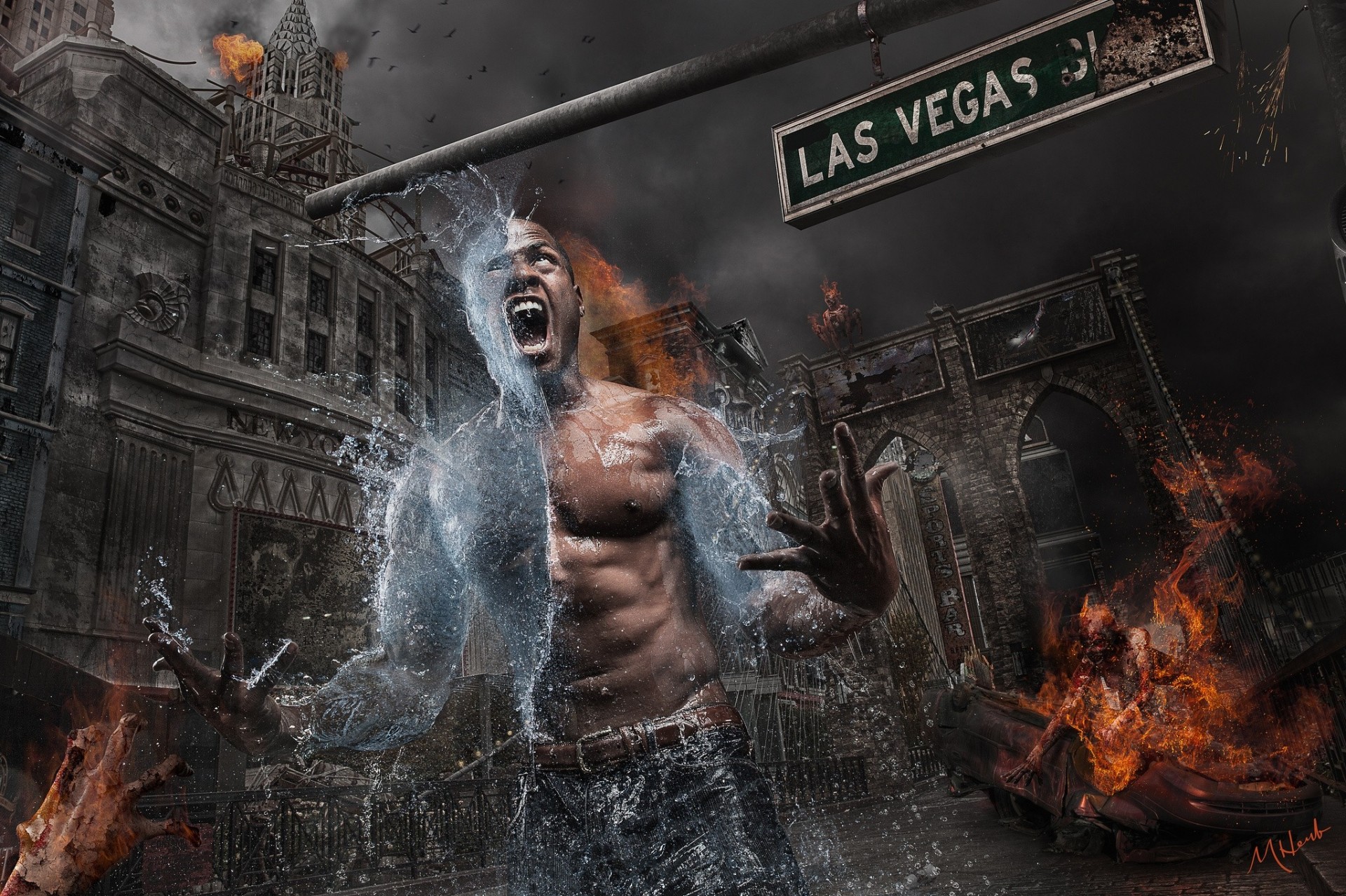 Menschliche Metomorphose mit Wasser