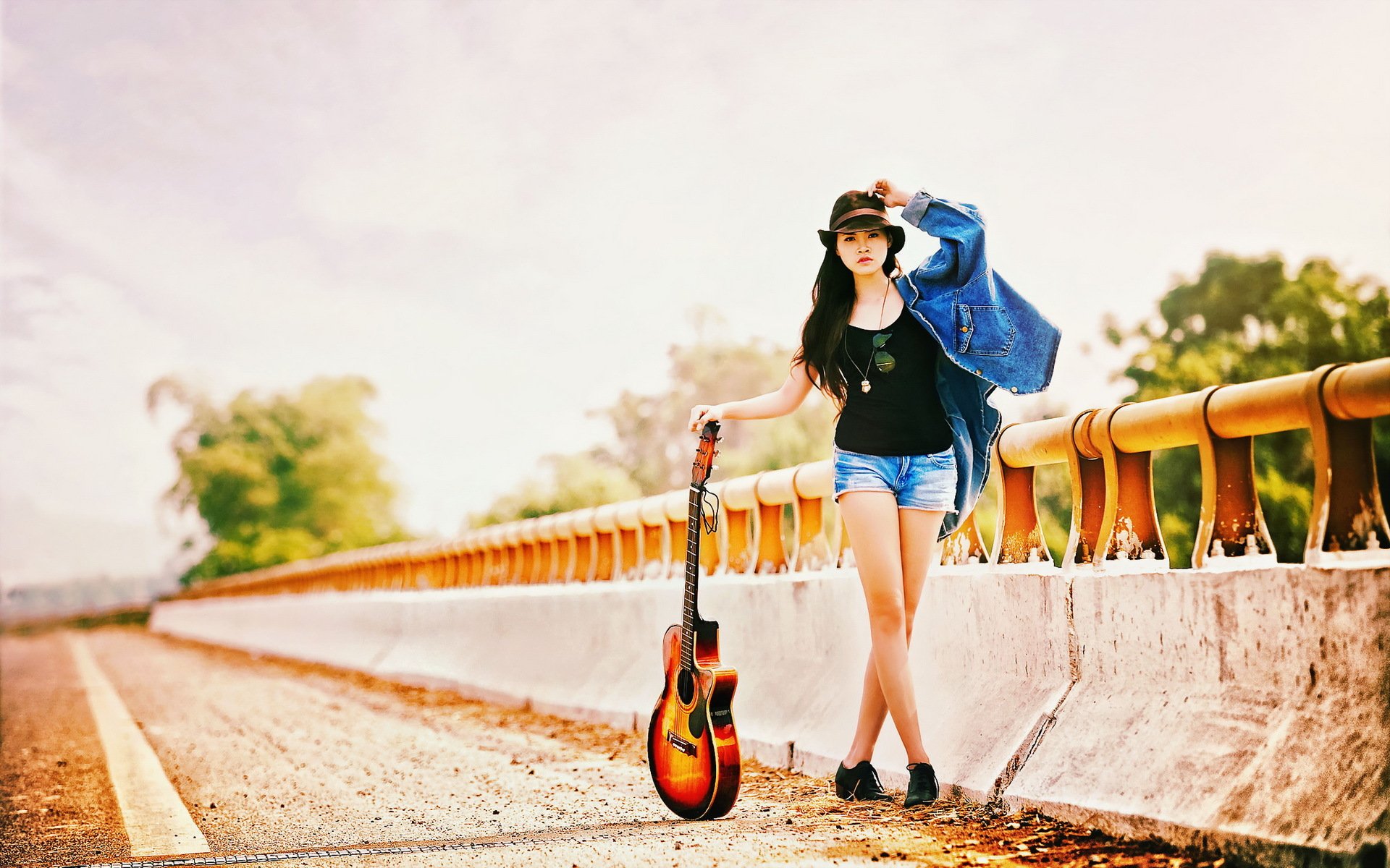 Die gitarre in den händen eines mädchens in der naturDie Gitarre in den Händen eines Mädchens in der Natur