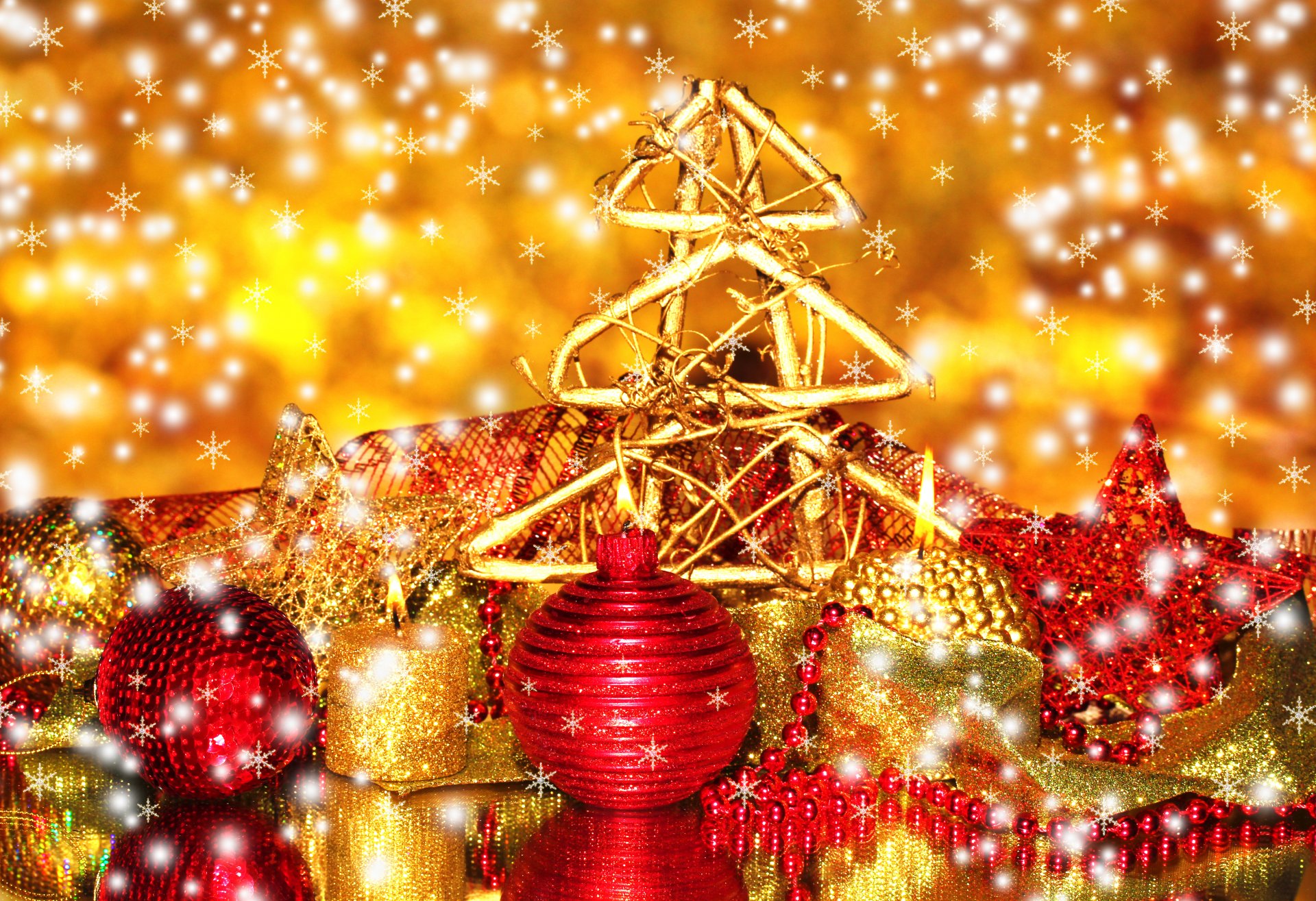 Goldene Kugeln und Sterne am Weihnachtsbaum