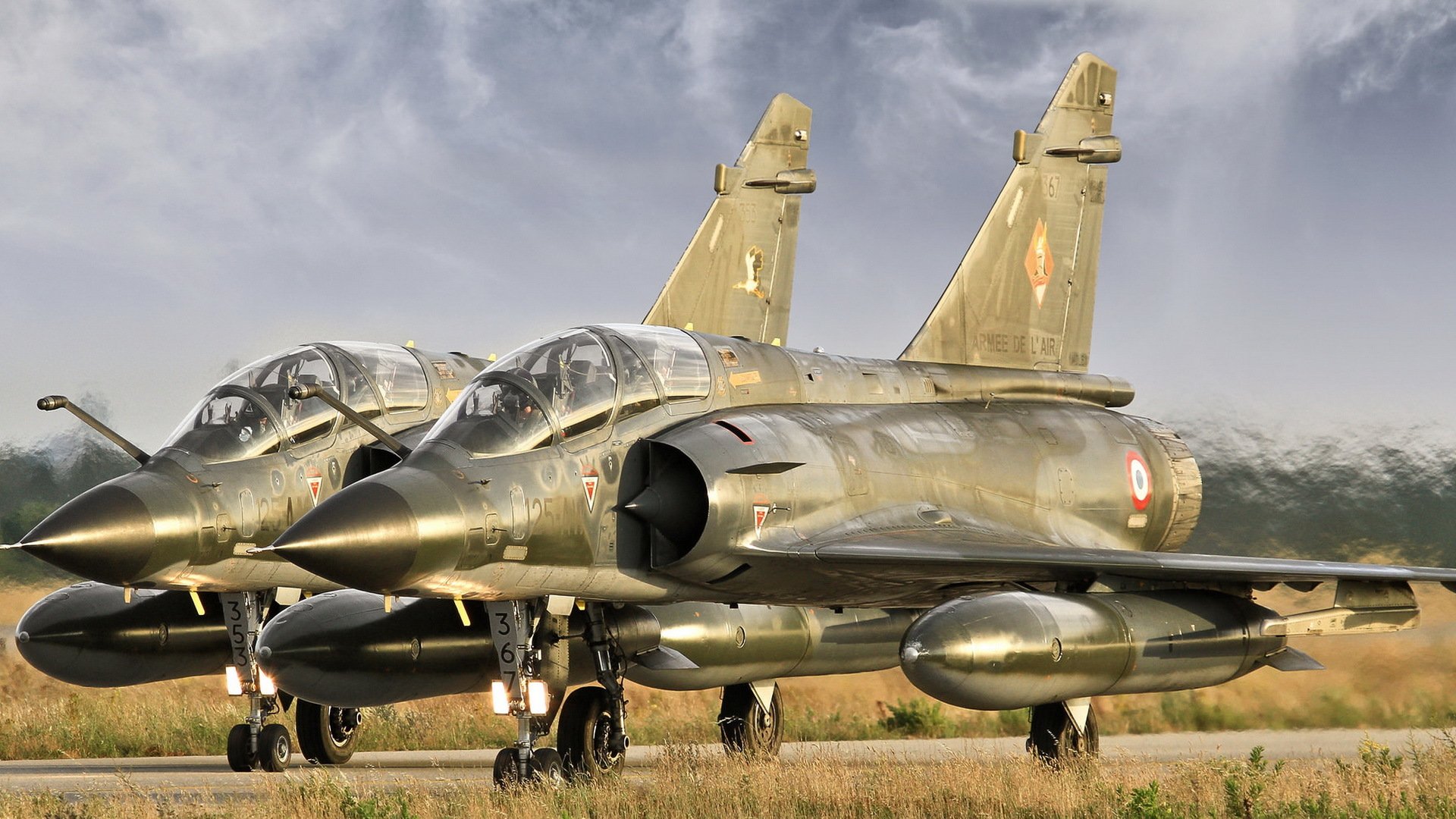 Militärische kampfjets auf dem hintergrund eines gewitterhimmelsMilitärische Kampfjets auf dem Hintergrund eines Gewitterhimmels