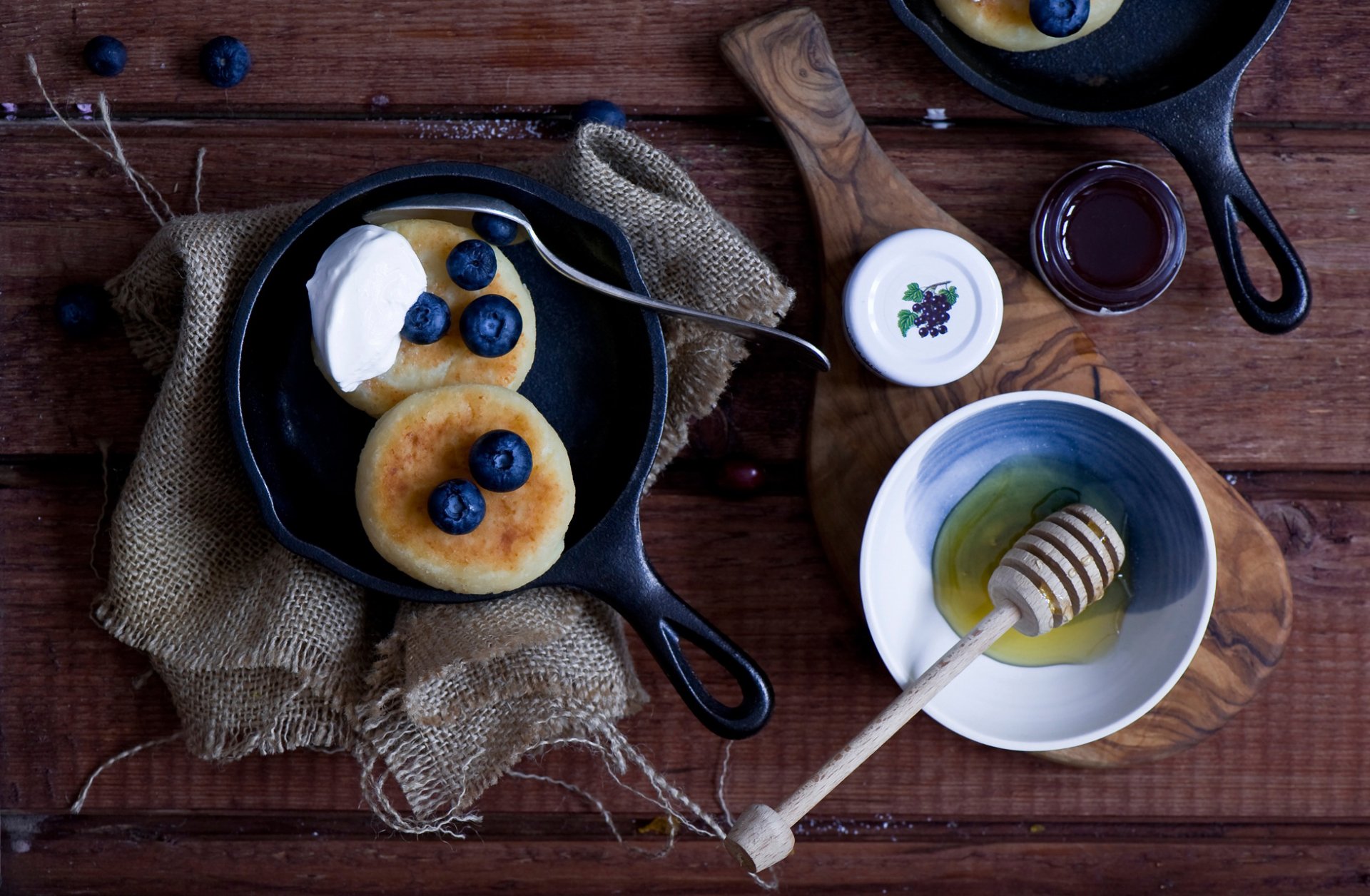 Pfannkuchen mit blaubeerbeeren und saurer sahne serviertPfannkuchen mit Blaubeerbeeren und saurer Sahne serviert