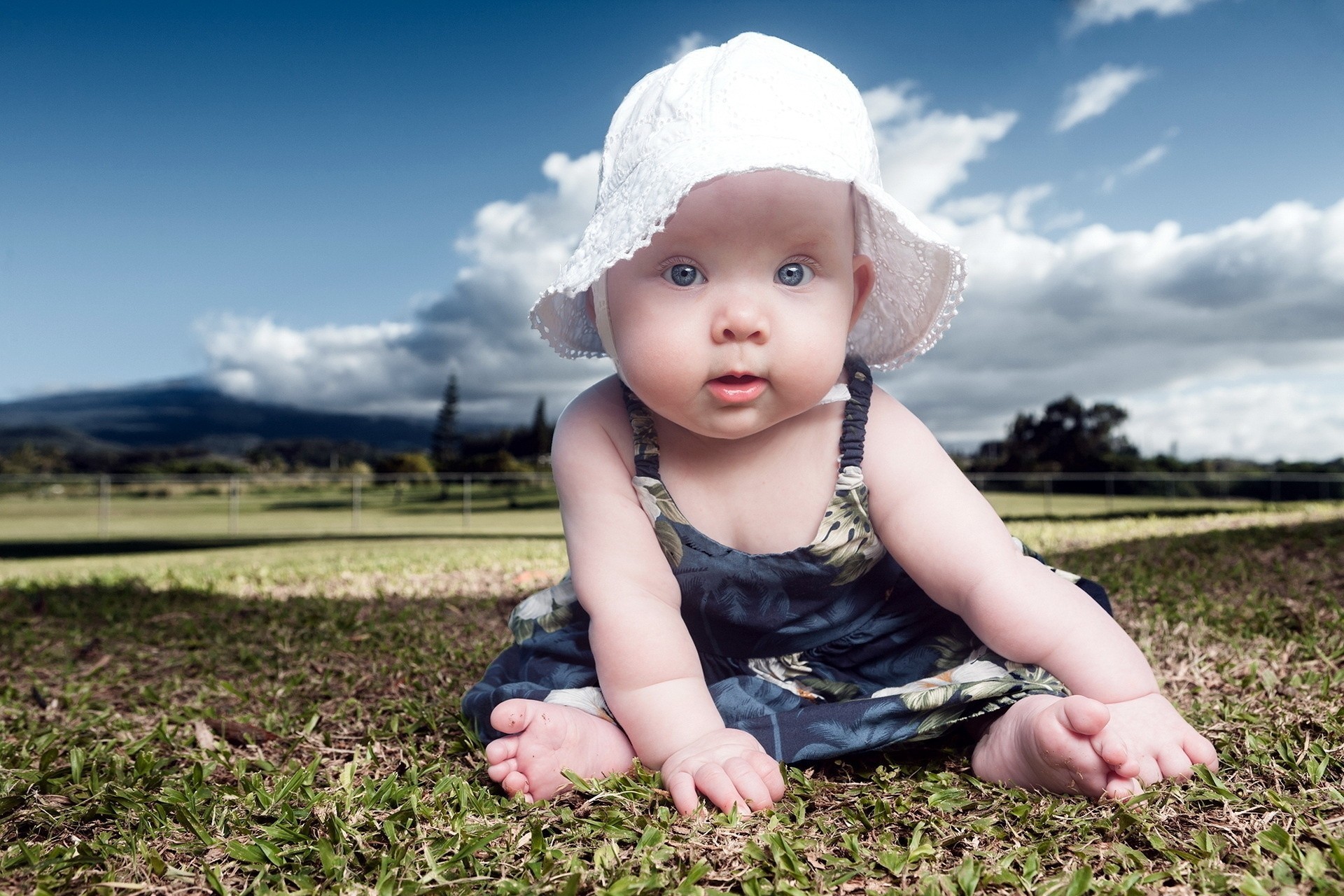 Kleiner Baum auf gelber Basis und blauem Hintergrund