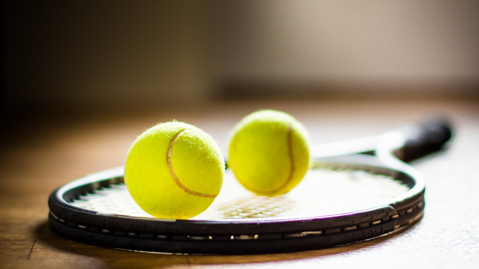 Tennisbälle liegen auf einem Schläger