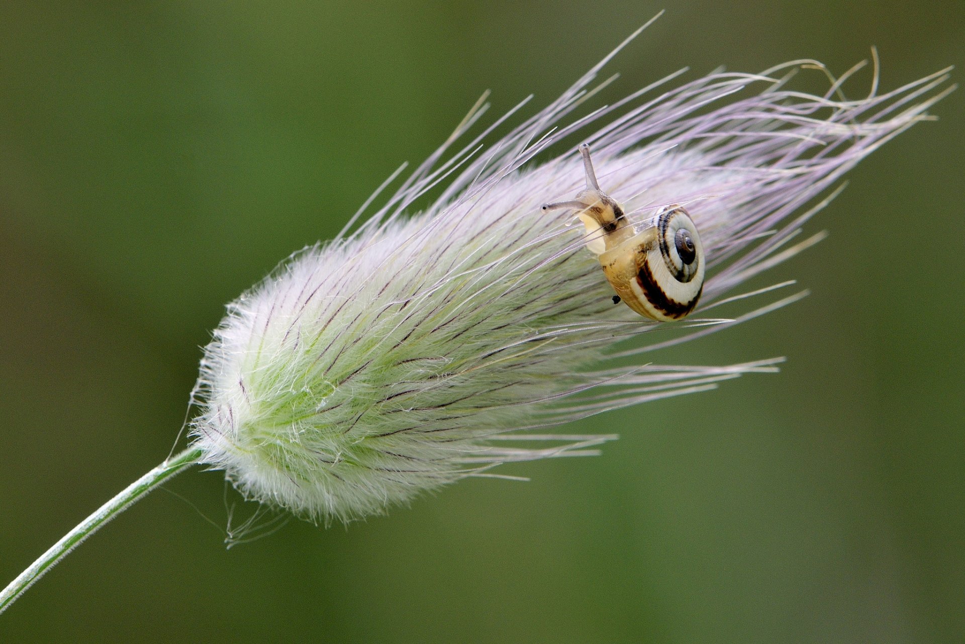 Schnecke auf einem stein und ein blatt mit einem tropfenSchnecke auf einem Stein und ein Blatt mit einem Tropfen