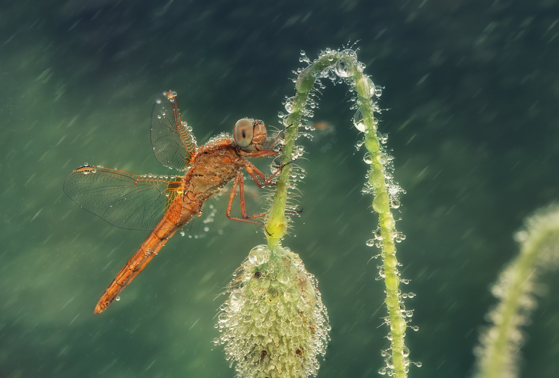 Regentropfen bei der Makroaufnahme auf einer Tafel