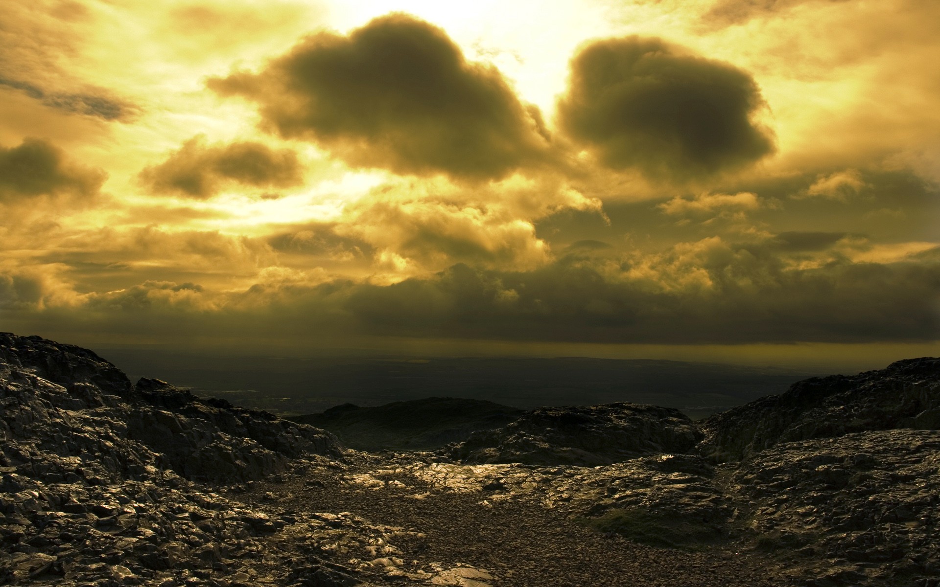 Niedriger himmel mit düsteren wolken am meer mit wellenNiedriger Himmel mit düsteren Wolken am Meer mit Wellen