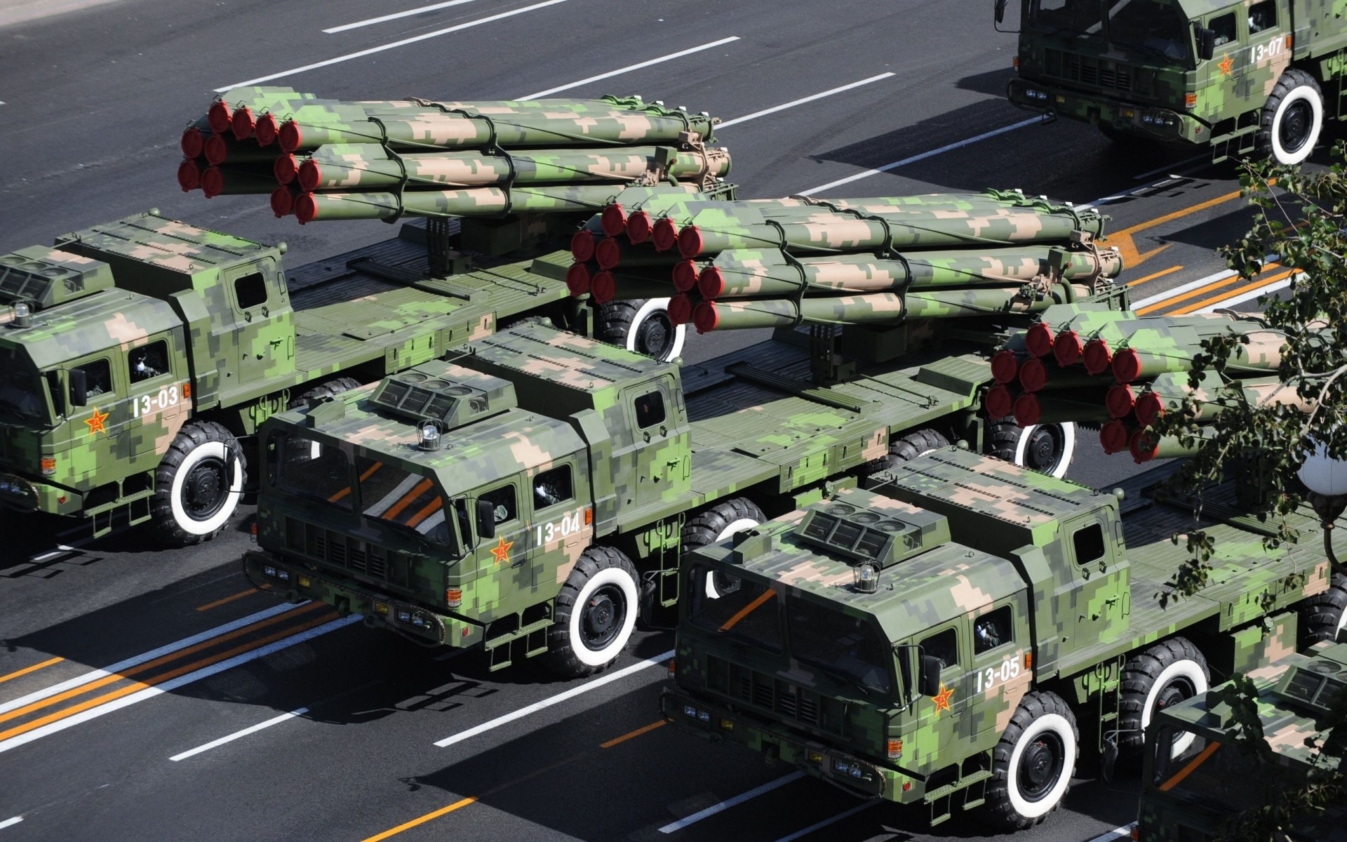 Eine Waffe, die nachts auf einem Schiff angebracht ist.