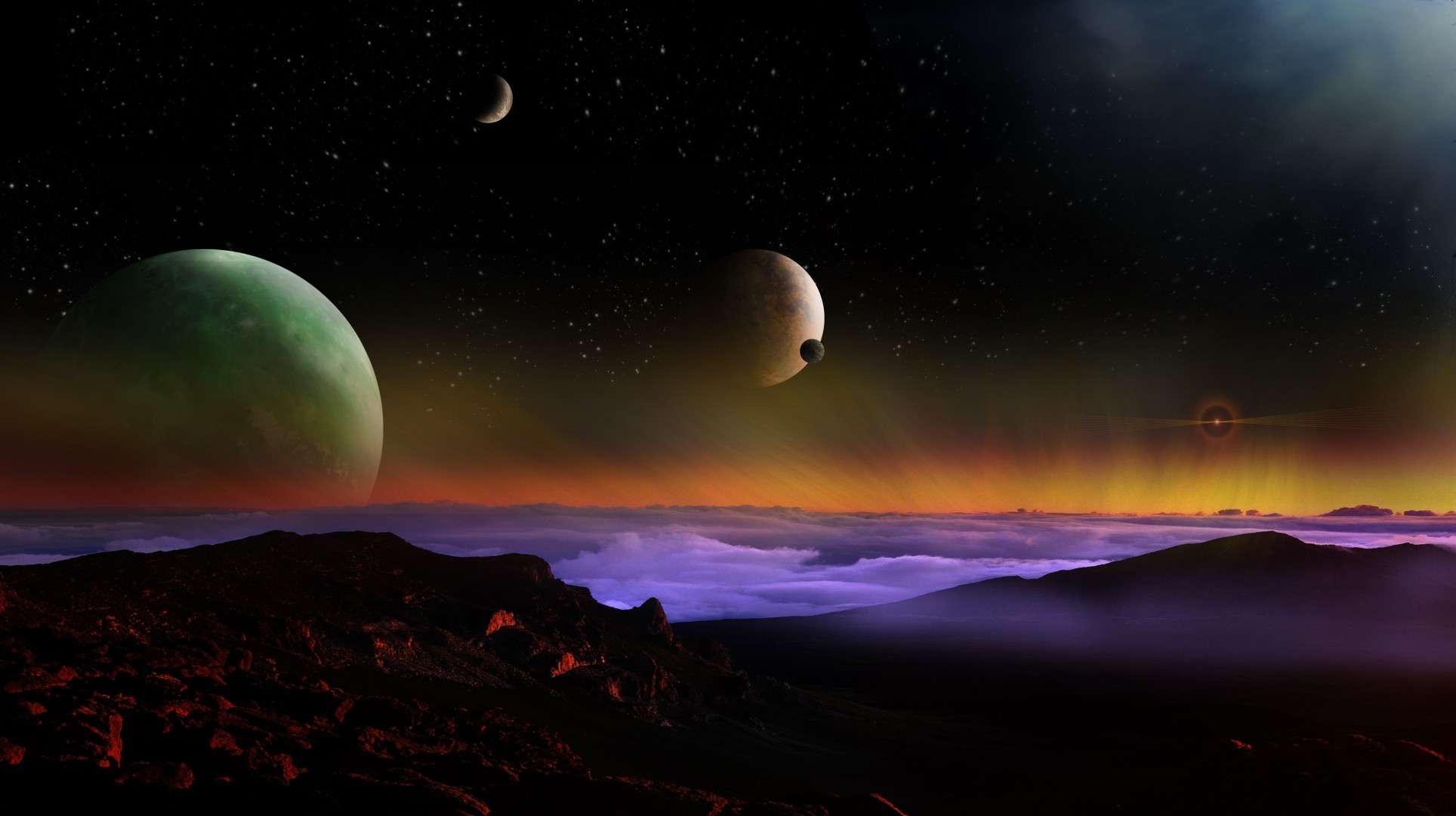 Geheimnisvolle kosmische landschaft mit himmelskörpernGeheimnisvolle kosmische Landschaft mit Himmelskörpern